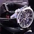Брендовая модель наделена чёрным циферблатом с оранжевыми деталями, такое исполнение смотрится ярко и стильно. Современный аксессуар наделён технологией питания от солнечной батареи , позволяющей не задумываться о необходимости подзавода. При активированной функции сохранения энергии аккумулятор без подзарядки будет работать до 33 месяцев. Технология Bluetooth 4.0BluetoothСовременная технология, позволяющая синхронизировать часы с телефоном и переносить данные. Часы с Bluetooth расширяют возможности вашего смартфона и делают его использование ещё более удобным. с низким потреблением энергии. Ударопрочный корпусУдаропрочный корпусМеханизм заключён в корпус, выполненный из современных материалов, устойчивых к ударам, механическим повреждениям и падению с высоты: инновационный пластик, карбон, нержавеющая сталь, титан. из нержавеющей стали 316L. Закаленное минеральное стекло. Люминесцентная подсветка NeobriteПодсветка NeobriteИспользование светонакопительных составов на основе сульфида цинка или алюмината стронция, яркий свет можно наблюдать на протяжении 6-10 часов после «зарядки» часов около источника света.. Водонепроницаемость 10 бар. Возможность включения авиарежима. Чёрный ремешок из натуральной кожи. Завинчивающаяся заводная головка с защитой. Функция поиска телефона, расчёт средней скорости преодолённого маршрута, автоматический календарь, хронографХронографФункция позволяет измерять отрезки времени с особой точностью: часы, минуты, секунды. Верным признаком хронографа является наличие на циферблате 3 дополнительных окошек-счётчиков., секундомер, отображение уведомлений о входящих письмах электронной почты, будильник, мировое времяМировое время Полезное часовое усложнение, отображающее время в основных городах и известных областях по всему миру, оно связано с часовыми поясами, удобно для путешественников и бизнесменов. . Габариты: 52 x 48,1 x 14,1 мм.