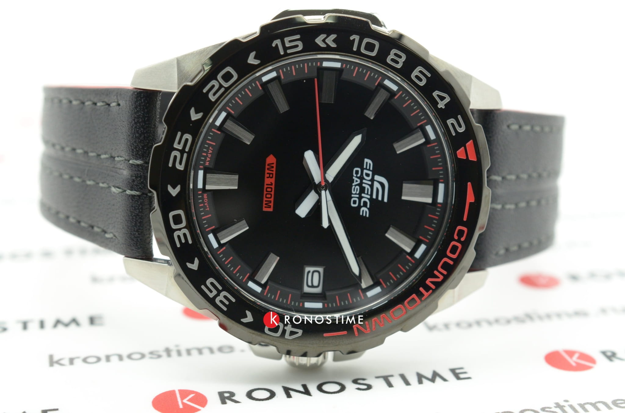 Это отличное решение для современных мужчин, стремящихся выглядеть стильно в любой ситуации. Чёрный циферблат с крупной индикацией времени дополнен яркими акцентами красного цвета, что придаёт общему дополнению динамичность. Прослеживается дайверский характер благодаря однонаправленно вращающемуся фактурному безелюБезельВнешний ободок, закрепляющий стекло. В спортивных часах так называется поворотное кольцо с делениями на циферблате, выполняет роль таймера – замеряет отрезки времени на шкале. Неподвижный безель – элемент декора. Однонаправленно вращающийся безель на дайверских часах позволяет фиксировать моменты погружения и выныривания на поверхность.. Ударопрочный корпусУдаропрочный корпусМеханизм заключён в корпус, выполненный из современных материалов, устойчивых к ударам, механическим повреждениям и падению с высоты: инновационный пластик, карбон, нержавеющая сталь, титан. сделан из стали 316L с противокоррозионными свойствами. Кварцевый японский механизм отличается точностью хода +/- 20 секунд в месяц. Срок службы батарейки - 3 года. Частичное IP-покрытиеIP-покрытиеМетод ионного напыления. Демонстрирует повышенную устойчивость к истиранию, окислению и химическим веществам. Под воздействием высокого давления и температуры около 1500°C молекулы металла надёжно соединяются с частицами корпуса часов.. Минеральное стекло. Оригинальный ремешок из натуральной кожи. Люминесцентная подсветка NeobriteПодсветка NeobriteИспользование светонакопительных составов на основе сульфида цинка или алюмината стронция, яркий свет можно наблюдать на протяжении 6-10 часов после «зарядки» часов около источника света.. Водостойкость 100 метров. Завинчивающаяся задняя крышка. Заводная головка с системой защиты. Отображение текущего числа. Габариты: 47,2 x 41 x 10,4 мм.