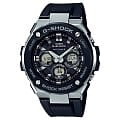 Спортивные ударопрочные наручные кварцевые мужские часы на солнечной батарее. Цифровой циферблат темного цвета. Корпус часов выполнен из нержавеющей стали и пластика черного цвета. Минеральное стекло устойчиво к царапинам. Часы надежно удерживаются на руке ремешком из высокопрочного полимерного пластика черного цвета. Водонепроницаемость 200М. Из дополнительных функций в часах присутствует: вечный календарь, секундомер, таймер обратного отсчета, второй часовой пояс, будильник (количество установок: 5), ежечасный сигнал, функция включения/отключения звука кнопок, автоподсветка, прием радиосигнала.