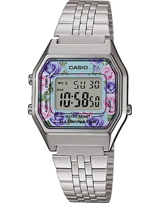Электронные часы. Водостойкость WR 30. Секундомер с точностью показаний 1/100. 12/24х часовой формат времени. Автоматический календарь. Подсветка. Будильник. Ежечасный сигнал. Корпус выполнен из пластика. Размеры корпуса 29 мм х 34 мм, толщина 9 мм. Пластиковое стекло. Браслет выполнен из нержавеющей стали.
