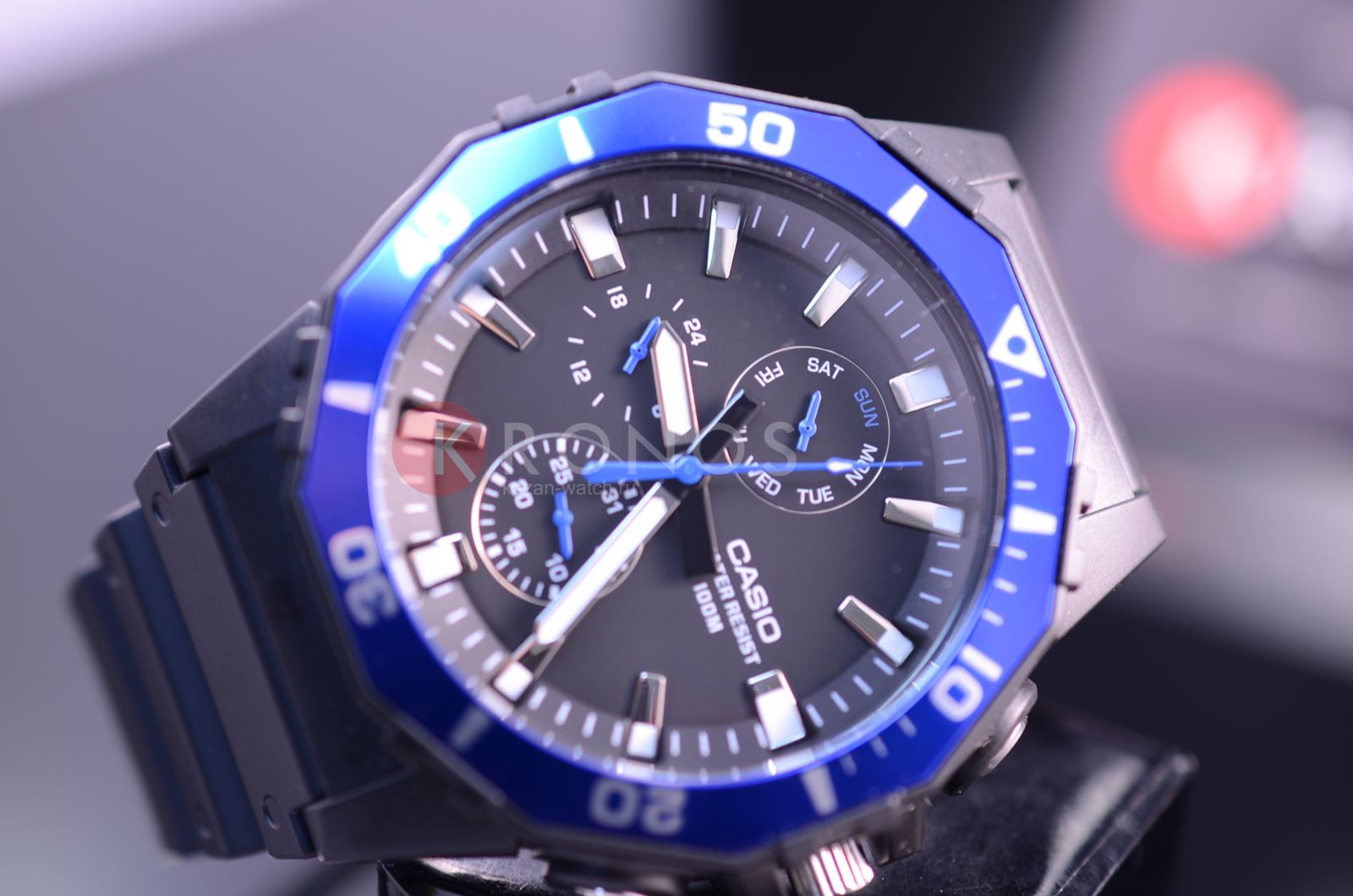 - Указатели даты и дня недели дополнительными стрелками на отметке «12» и «6 часов». В дизайне корпуса сочетаются современный спортивный стиль, элементы оформления часов для подводных погружений, использованы различные цветовые решения.