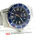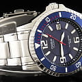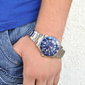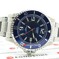 Синий циферблат имеет крупную индикацию времени, что позволяет увидеть показания даже при мимолётном взгляде на циферблат. Оформление выдержано в дайверской тематике, обратите внимание на однонаправленно вращающийся безельБезельВнешний ободок, закрепляющий стекло. В спортивных часах так называется поворотное кольцо с делениями на циферблате, выполняет роль таймера – замеряет отрезки времени на шкале. Неподвижный безель – элемент декора. Однонаправленно вращающийся безель на дайверских часах позволяет фиксировать моменты погружения и выныривания на поверхность. и высокую степень водозащиты WR 200. Кварцевый японский механизм. Срок службы батарейки составляет 10 лет. Надёжное минеральное стекло. Стрелки и метки с люминесцентным покрытиемЛюминесцентное покрытиеПозволяет считывать показания времени в темноте. Производители наносят на стрелки, часовые индексы, безель или поверхность циферблата светонакопительный состав, дающий холодное свечение.. Корпус и браслет из износоустойчивой хирургической стали 316L. Апертура даты. Габариты: 48 x 42,6 x 11,5 мм.