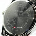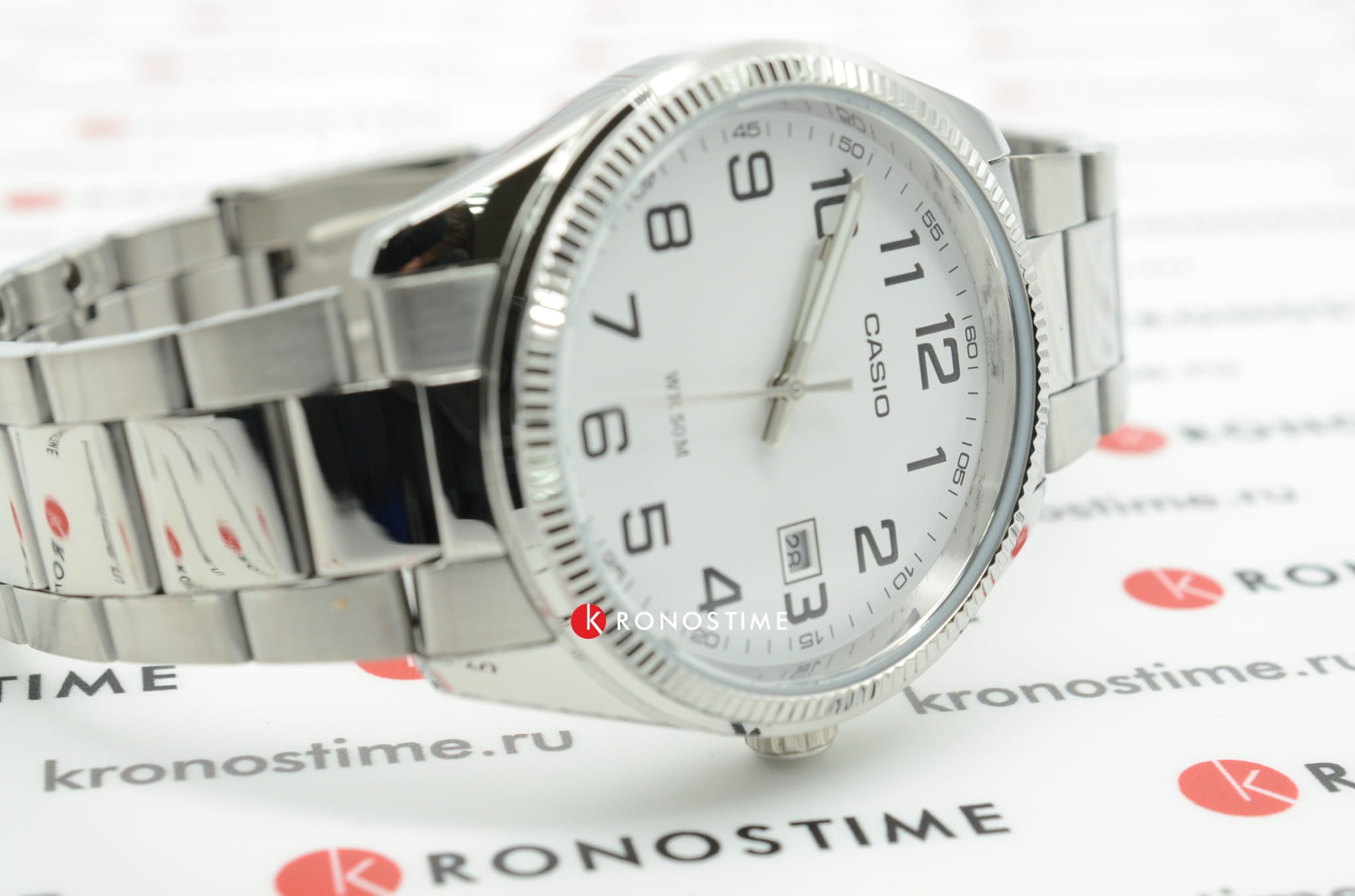 Скромный, и в то же время изящный дизайн выдержан в повседневном стиле. Серебристая поверхность наручных часов плавно отображает падающий свет. Прочный корпус выполнен из гипоаллергенной латуни. Браслет из нержавеющей стали будет надежно закрепляться на запястье с помощью раскладывающейся застежки. На циферблате традиционной формы расположены отчетливые арабские цифры. Есть миниатюрный календарь, показывающий текущую дату. Подсветка NeobriteПодсветка NeobriteИспользование светонакопительных составов на основе сульфида цинка или алюмината стронция, яркий свет можно наблюдать на протяжении 6-10 часов после «зарядки» часов около источника света. позволяет комфортно определять время в темное время суток. Минеральное стекло. Кварцевый тип механизма. Срок службы батарейки составляет 3 года. Водонепроницаемость равна 50 WR.