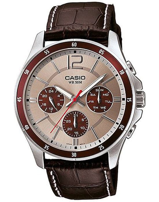 Мужские японские наручные часы из линейки MTP Collection умело сочетают в себе винтажные элементы и спортивный стиль, часы придутся по вкусу ценителям японского качества и лаконичности. Высокотехнологичный аксессуар обладает строгим стилем и традиционной формой циферблата. Сдержанные, классические цвета и плавные линии позволяют носить часы, не снимая, их универсальность идеально подходит для делового костюма, повседневной одежды или образа для вечернего выхода. Для корпуса использована нержавеющая сталь 316L, за счёт чего достигается повышенная устойчивость к повреждениям и ударам. Надежные часы которые прослужат много лет. Модель комплектуется надёжным механизмом, точность хода которого составляет +/- 20 сек/мес.