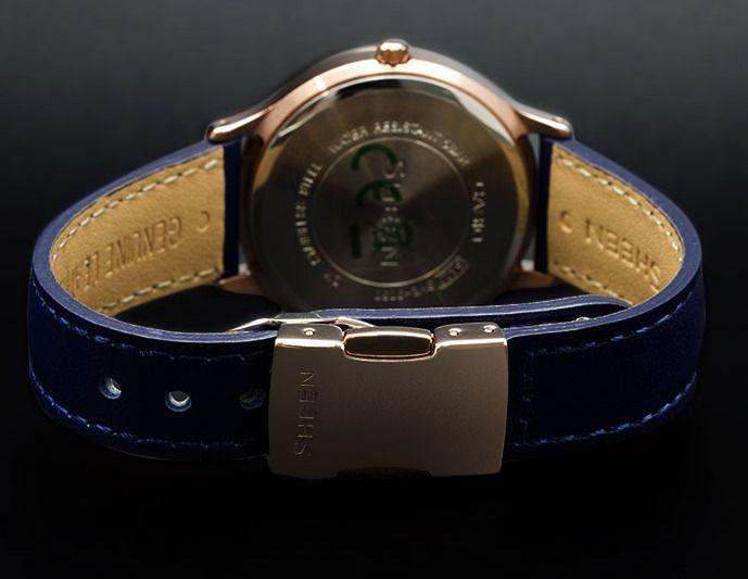 Имиджевые женские наручные часы, выполненные в fashion стиле. Кварцевые часы с элементом питания SR920SW. Корпус часов SHE-3030GL-2A выполнен из высокопрочной стали с полным IP покрытием. Синий фон циферблата перекликается с ярко-синим цветом ремешка из натуральной кожи. Водонепроницаемость часов 50 метров, минеральное стекло.  Украшены часы вставками из кристаллов Swarovski. Эти часы привлекут всеобщее внимание.