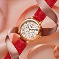 Стильные женские наручные часы, выполненные в fashion стиле. Кварцевые часы с элементом питания SR920SW. Корпус часов выполнен из высокопрочной стали с полным IP покрытием золотого цвета. Золотые индексы и стрелки на светлом циферблате. Водонепроницаемость часов 50 метров, минеральное стекло, устойчивое к царапинам. Украшены часы кристаллами Swarovski.  Ремешок из натуральной кожи белого цвета прочно удерживает часы на руке.
