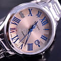 Наручные часы имеют элегантный дизайн, что делает их актуальным вариантом на долгие годы. Римские цифры наделяют модель оттенком винтажа, в качестве декора используются кристаллы Swarovski. Японский кварцевый механизм отличается высокой точностью хода. Для изготовления корпуса и браслета использована сталь 316L. Возможности: отображение даты, люминесцентная подсветкаЛюминесцентное покрытиеПозволяет считывать показания времени в темноте. Производители наносят на стрелки, часовые индексы, безель или поверхность циферблата светонакопительный состав, дающий холодное свечение..