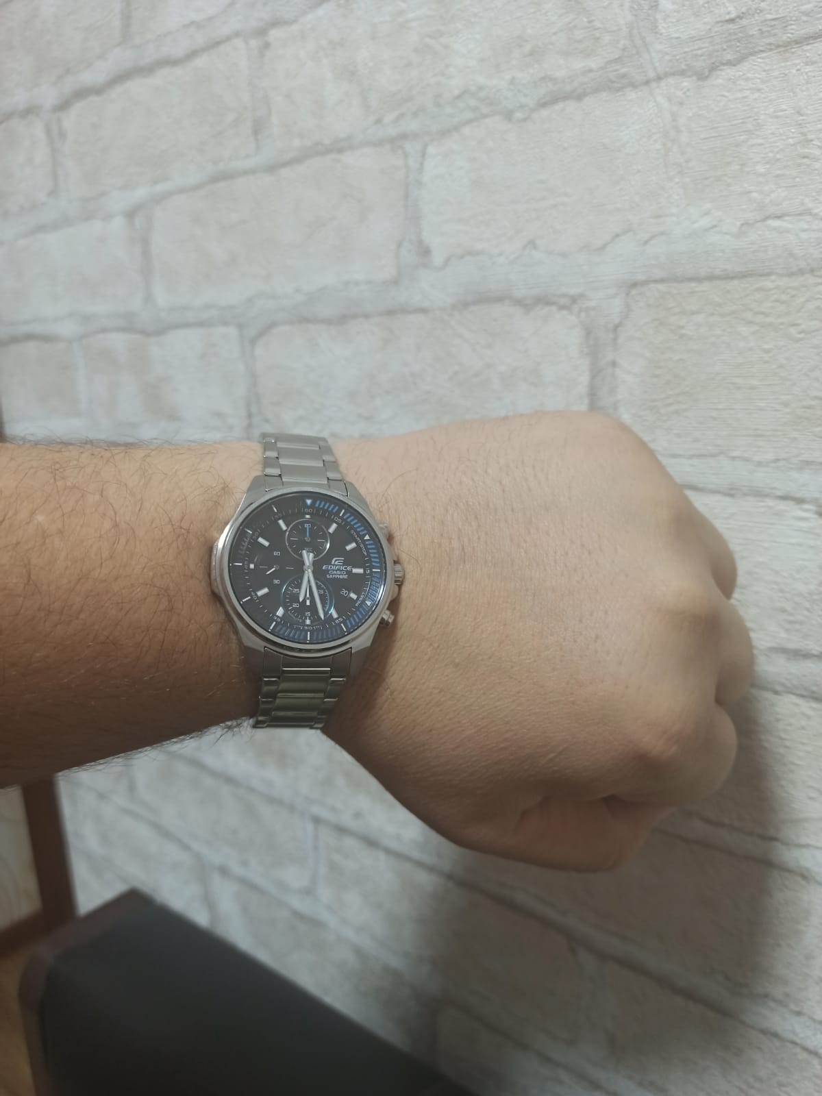 Хорошо сидят на руке . Особенность модели — достаточно тонкий корпус, по сравнению с другими часами эдифис. Сапфировое стекло ,не царапается и выглядит премиально. Водонепроницаемость 100 м. Очень понравилась цветная часть шкалы в правой части циферблата .Батарейка со сроком службы 5 лет — не солнечная, конечно, но и менять придется реже, чем обычную 2-летнюю.