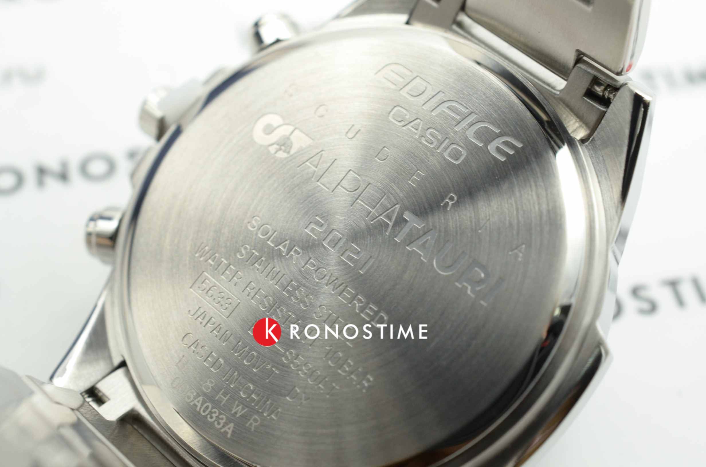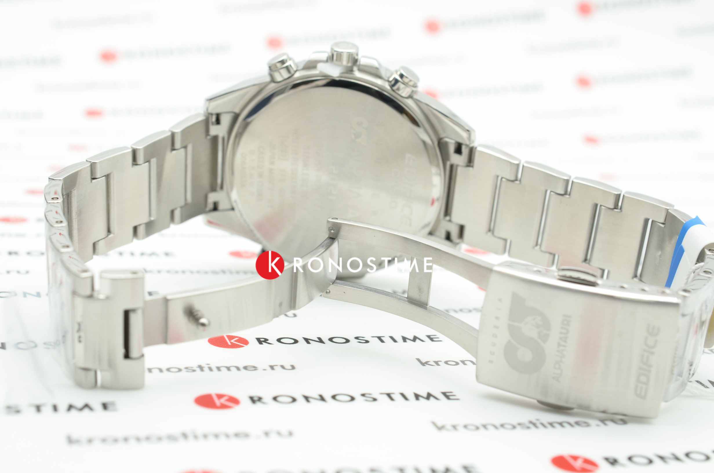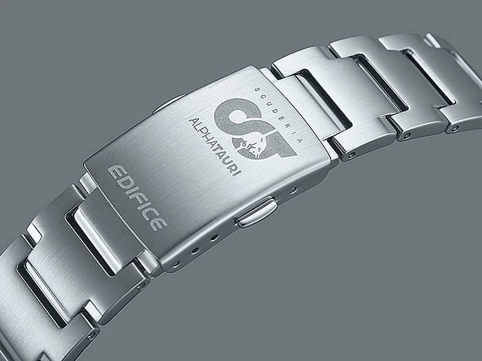 Коллаборация Edifice и итальянской гоночной команды Формулы-1 Scuderia AlphaTauri из серии EFS-S590 в стальном корпусе на стальном браслете. Лимитированная серия. Casio Edifice EFS-S590AT-1A из коллекции Edifice раскрывают автомобильную тематику.