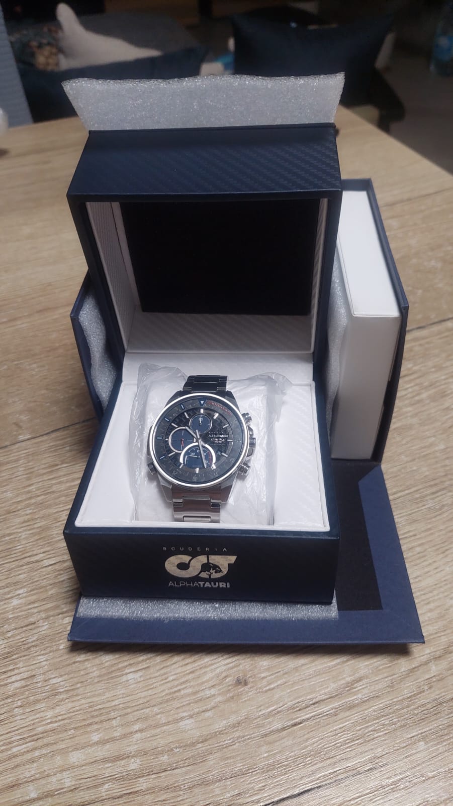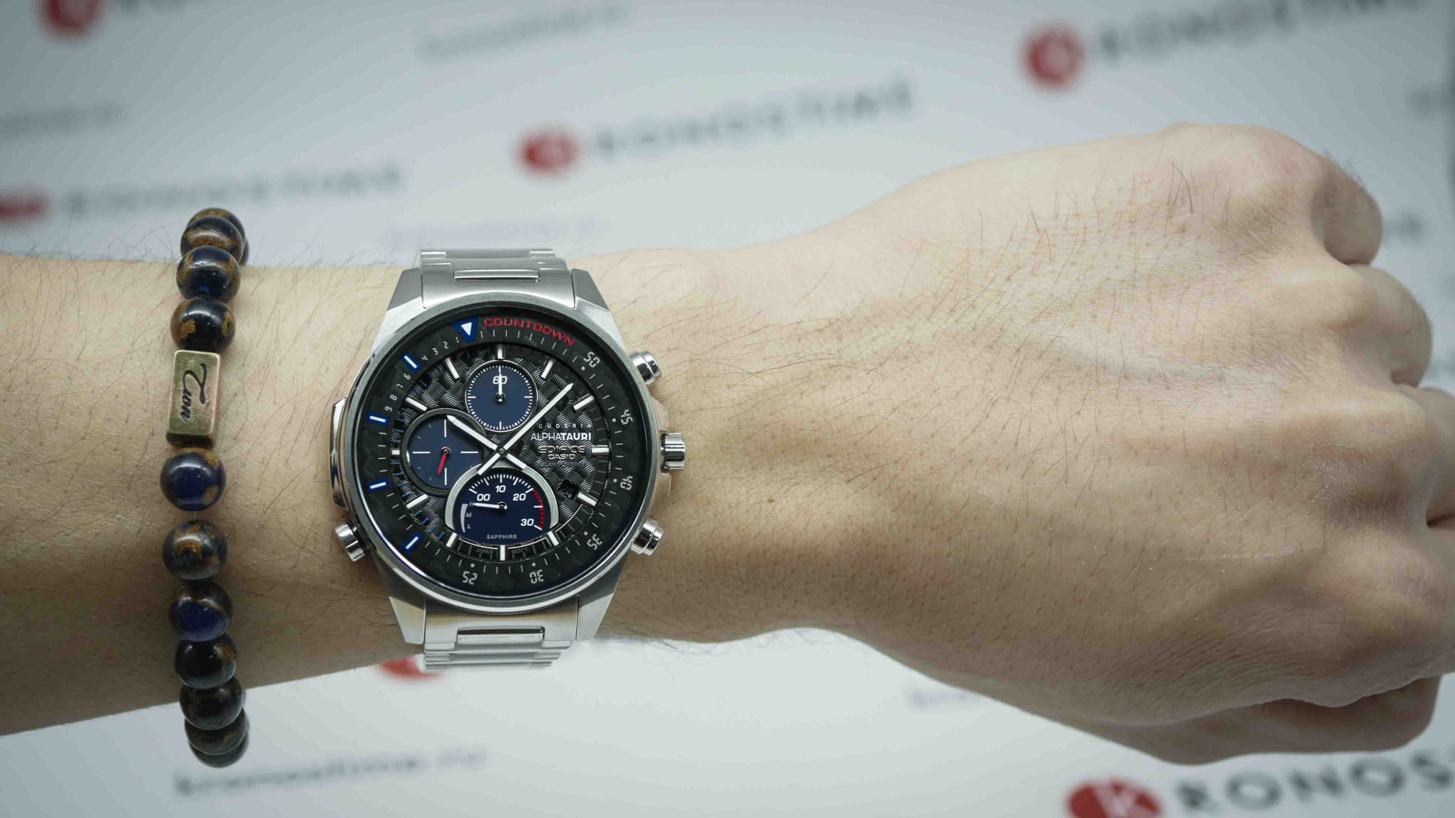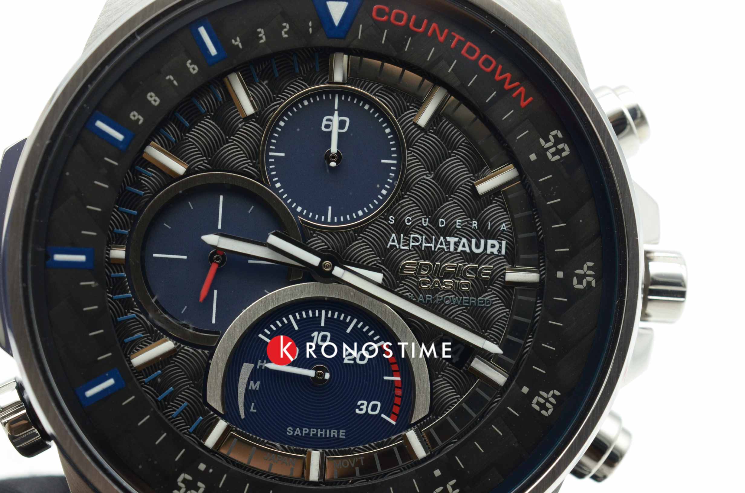 Коллаборация Edifice и итальянской гоночной команды Формулы-1 Scuderia AlphaTauri из серии EFS-S590 в стальном корпусе на стальном браслете. Лимитированная серия. Casio Edifice EFS-S590AT-1A из коллекции Edifice раскрывают автомобильную тематику.
