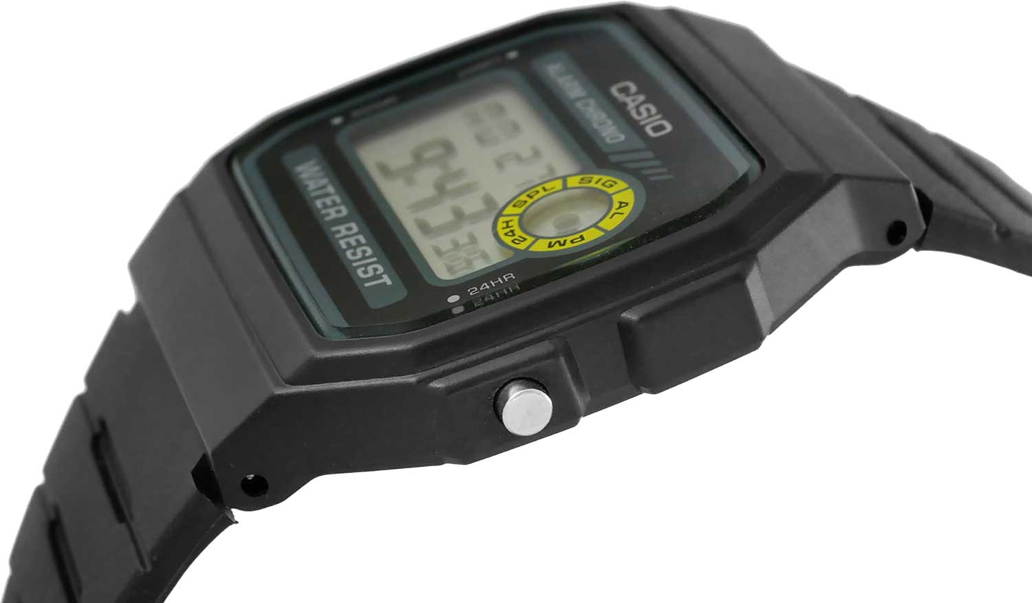 Простые и удобные мужские электронные часы на каждый день в популярном ретро-стиле Casio Collection F-94WA-8D, кварцевый механизм с высокой точностью. Класс водозащиты: 30 метров, позволит защитить корпус от случайных брызг или капель дождя. Корпус часов изготовлен из пластика. Пластиковый ремешок на стандартной застёжке. Циферблат подсвечивается сбоку электролюминесцентная подсветкойЭлектролюминесцентная подсветкаЭлектролюминесцентная панель устанавливается под ЖК-экраном часов, при нажатии кнопки электричество преобразуется в свет за счёт подачи напряжения на атомы фосфора, такой тип подсветки позволяет освещать весь циферблат.. СекундомерСекундомерСекундоме́р — прибор, способный измерять интервалы времени с точностью до долей секунды. с точностью показаний 1/100с и временем измерения 1ч. 12-ти и 24-х часовой формат времени.