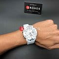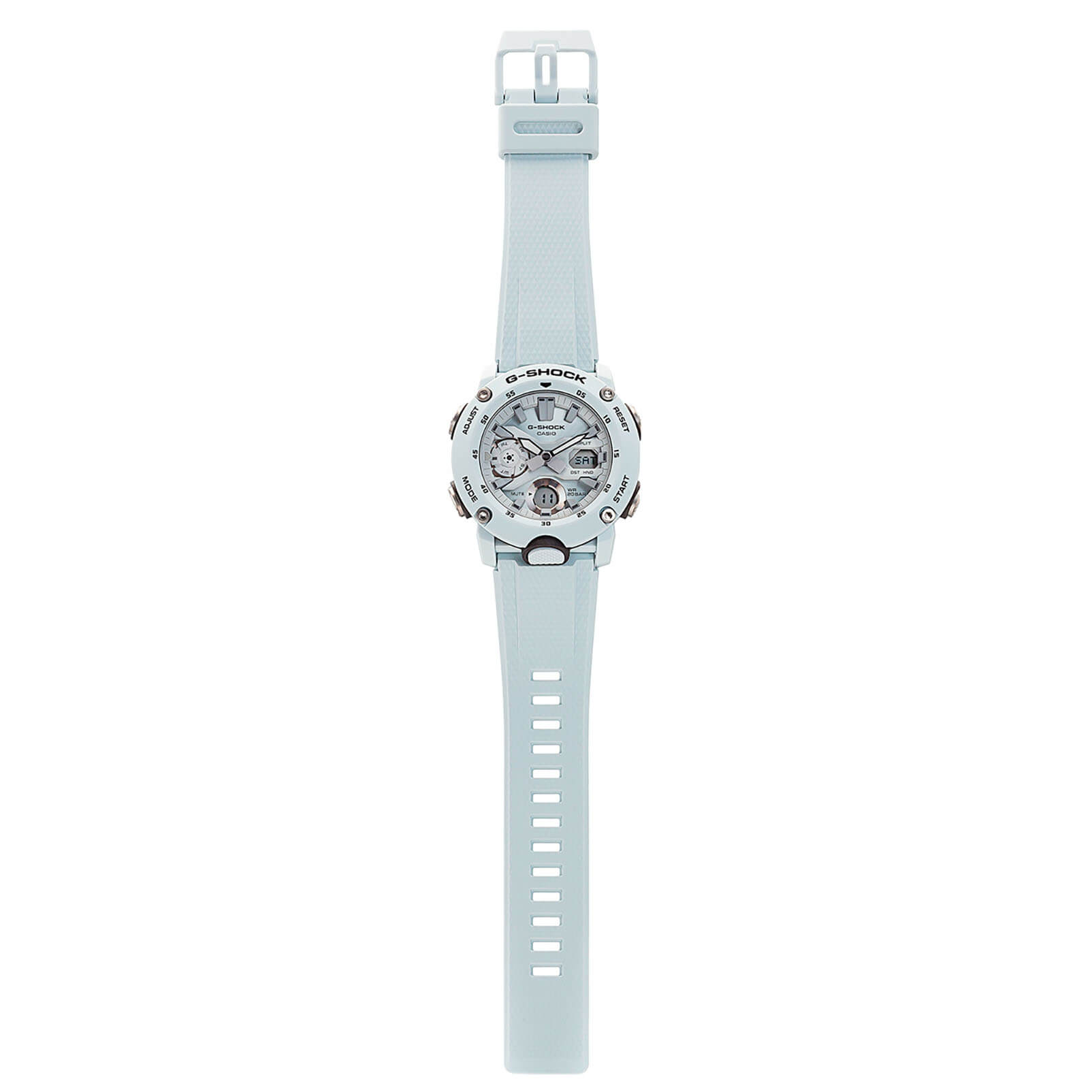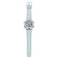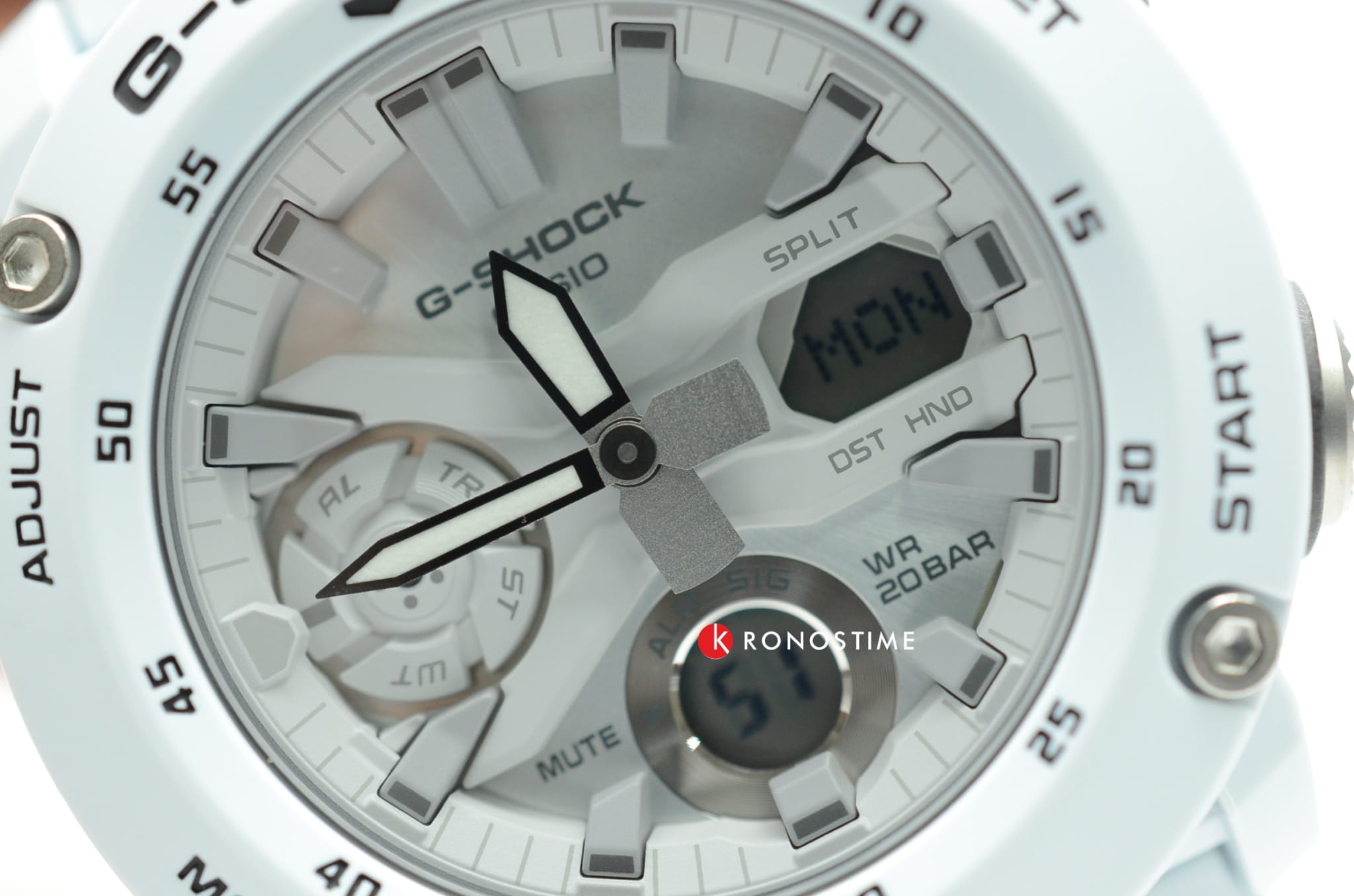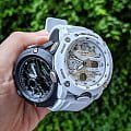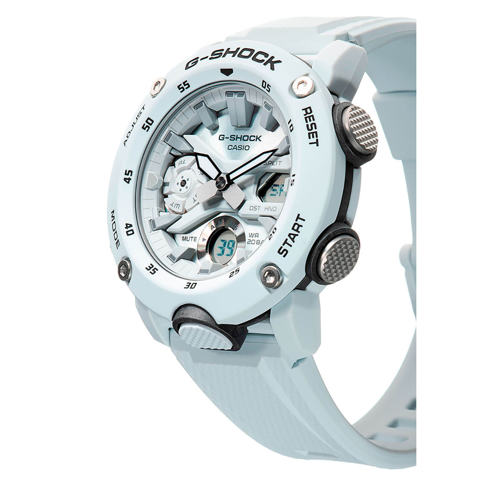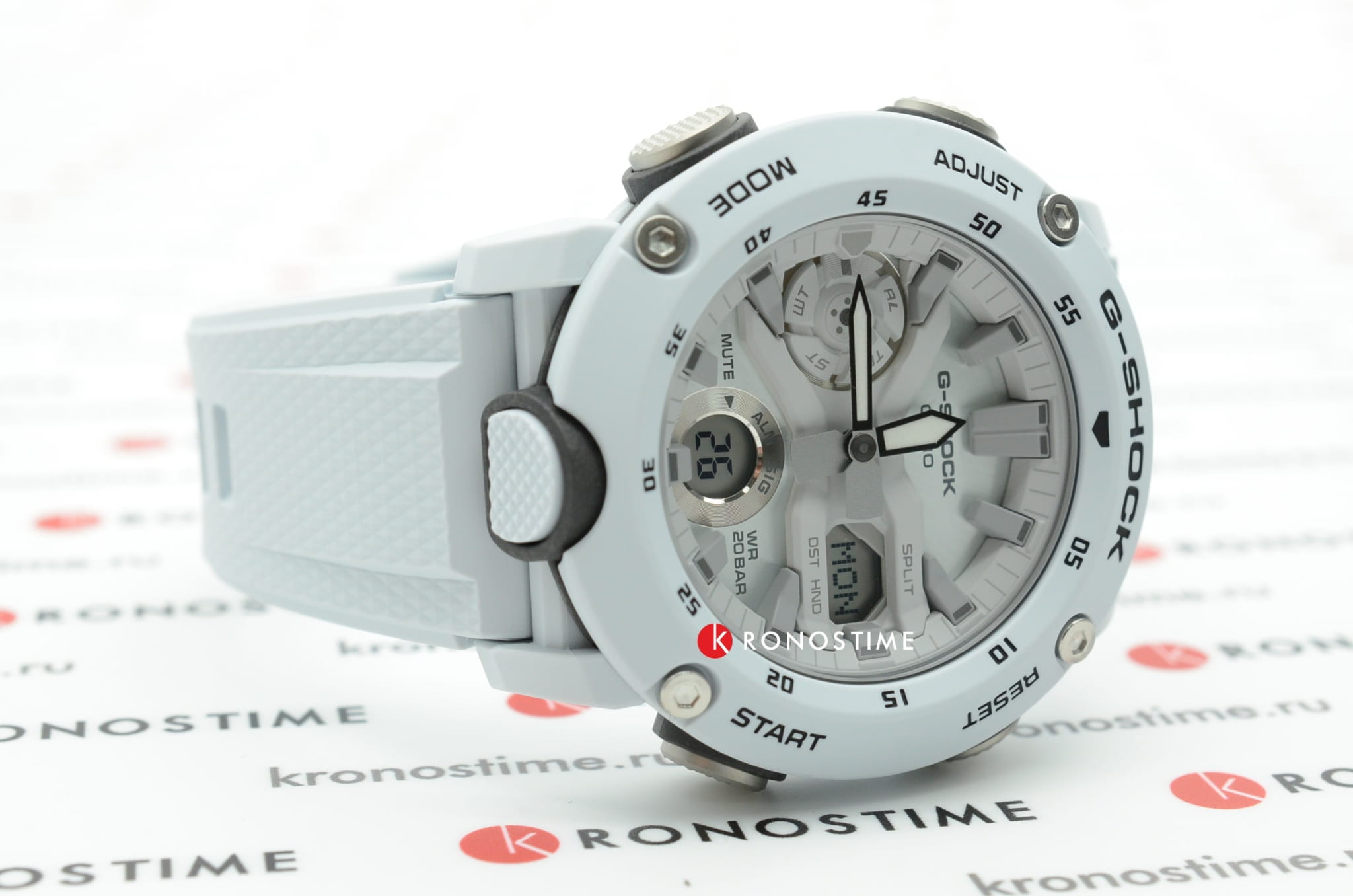 Наручные часы в белоснежном исполнении реализуют технологию Carbon Core GuardCarbon Core Guard Новейшая структура корпуса, разработанная Casio. Полиуретановая пластина дополнительно усилена карбоновыми вставками, что придаёт специальную защиту от механических повреждений. Карбон отличается лёгкостью и прочностью., карбон послужил материалом для изготовления противоударного корпусаУдаропрочный корпусМеханизм заключён в корпус, выполненный из современных материалов, устойчивых к ударам, механическим повреждениям и падению с высоты: инновационный пластик, карбон, нержавеющая сталь, титан.. Это позволило добиться повышенной устойчивости к ударам и падению без утяжеления общей конструкции. БезельБезельВнешний ободок, закрепляющий стекло. В спортивных часах так называется поворотное кольцо с делениями на циферблате, выполняет роль таймера – замеряет отрезки времени на шкале. Неподвижный безель – элемент декора. Однонаправленно вращающийся безель на дайверских часах позволяет фиксировать моменты погружения и выныривания на поверхность. оставлен полимерным. Японский кварцевый механизм работает за счёт батарейки, срок службы которой - 3 года. Закаленное минеральное стекло. Двойная задняя крышка, стальная и пластиковая. Светодиодная подсветкаСветодиодная подсветкаСветодиодная или LED-подсветка обеспечивает появление яркого холодного свечения за счёт LED-элементов - маленьких лампочек. Они потребляют минимальное количество энергии, чаще всего можно встретить 1 светодиод, в нижней части циферблата.. Водонепроницаемость 200 метров. Возможность быстрой и лёгкой замены полимерного ремешка. ХронографХронографФункция позволяет измерять отрезки времени с особой точностью: часы, минуты, секунды. Верным признаком хронографа является наличие на циферблате 3 дополнительных окошек-счётчиков., автоматический календарь, мировое времяМировое время Полезное часовое усложнение, отображающее время в основных городах и известных областях по всему миру, оно связано с часовыми поясами, удобно для путешественников и бизнесменов. , будильник, секундомер, таймер с автоповтором. Габариты: 48,7 x 51,2 x 14,1 мм.
