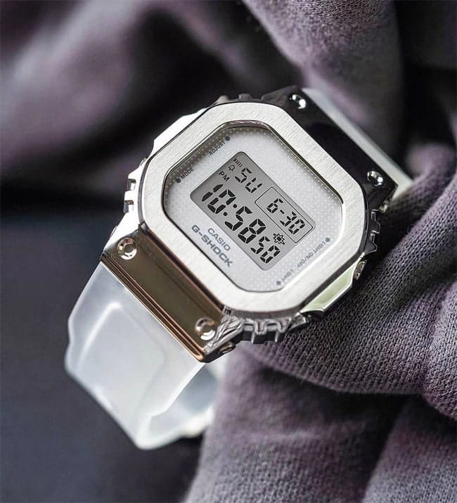 Японские женские часы GM-S5600SK-7 из коллекции G-Shock позволят чувствовать себя на высоте в любой ситуации, стильный аксессуар подчеркнёт вашу разборчивость и тонкий вкус. Дизайнеры оснастили модель узнаваемым легендарным ударопрочным корпусомУдаропрочный корпусМеханизм заключён в корпус, выполненный из современных материалов, устойчивых к ударам, механическим повреждениям и падению с высоты: инновационный пластик, карбон, нержавеющая сталь, титан., эксклюзивной деталью стал безельБезельВнешний ободок, закрепляющий стекло. В спортивных часах так называется поворотное кольцо с делениями на циферблате, выполняет роль таймера – замеряет отрезки времени на шкале. Неподвижный безель – элемент декора. Однонаправленно вращающийся безель на дайверских часах позволяет фиксировать моменты погружения и выныривания на поверхность. из нержавеющей стали. Такое исполнение в несколько раз повысило устойчивость к ударам и повреждениям с сохранением лёгкого веса. Кварцевый японский механизм работает от батарейки, рассчитанной на 2 года. Упрощённый и быстрый механизм замены ремешка. Электролюминесцентная подсветкаЭлектролюминесцентная подсветкаЭлектролюминесцентная панель устанавливается под ЖК-экраном часов, при нажатии кнопки электричество преобразуется в свет за счёт подачи напряжения на атомы фосфора, такой тип подсветки позволяет освещать весь циферблат. сине-зелёного цвета. Минеральное стекло. Водонепроницаемость 200 метров. Дополнительные возможности: будильникБудильникБуди́льник — часы, в заданный момент времени подающие звуковой, световой и/или в редких случаях другой сигнал. со световым сигналом, хронографХронографФункция позволяет измерять отрезки времени с особой точностью: часы, минуты, секунды. Верным признаком хронографа является наличие на циферблате 3 дополнительных окошек-счётчиков., автоматический вечный календарьВечный календарьКлассическое часовое усложнение, представляющее собой календарь, рассчитанный на несколько лет вперёд (стандартно – до 2099 года). Определяет текущую дату, день недели, месяц. до 2039 года, мировое времяМировое время Полезное часовое усложнение, отображающее время в основных городах и известных областях по всему миру, оно связано с часовыми поясами, удобно для путешественников и бизнесменов. , секундомерСекундомерСекундоме́р — прибор, способный измерять интервалы времени с точностью до долей секунды., таймер с автоповтором.