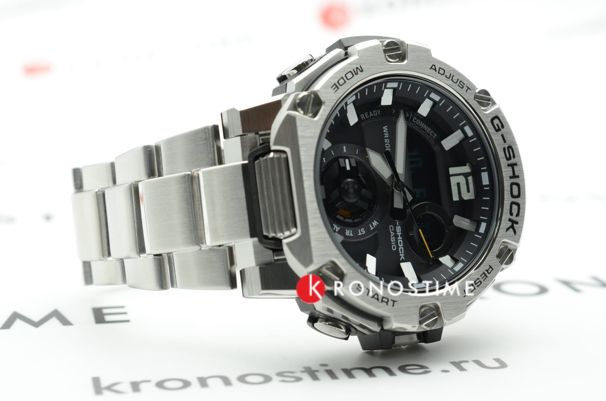 Японские мужские часы Casio G-Shock GST-B300E-5AER привлекают брутальным спортивным дизайном. Корпус имеет структуру Carbon Core GuardCarbon Core Guard Новейшая структура корпуса, разработанная Casio. Полиуретановая пластина дополнительно усилена карбоновыми вставками, что придаёт специальную защиту от механических повреждений. Карбон отличается лёгкостью и прочностью., что говорит о повышенной ударопрочности. БезельБезельВнешний ободок, закрепляющий стекло. В спортивных часах так называется поворотное кольцо с делениями на циферблате, выполняет роль таймера – замеряет отрезки времени на шкале. Неподвижный безель – элемент декора. Однонаправленно вращающийся безель на дайверских часах позволяет фиксировать моменты погружения и выныривания на поверхность. и браслет изготовлены из стали 316L. Японский кварцевый механизм отличается высокой точностью хода 15 +/- секунд в месяц. Часы оснащены инновационной технологией , синхронизация со смартфоном происходит с помощью BluetoothBluetoothСовременная технология, позволяющая синхронизировать часы с телефоном и переносить данные. Часы с Bluetooth расширяют возможности вашего смартфона и делают его использование ещё более удобным.. Возможности: двойная автоматическая подсветка, мировое времяМировое время Полезное часовое усложнение, отображающее время в основных городах и известных областях по всему миру, оно связано с часовыми поясами, удобно для путешественников и бизнесменов. , будильник, хронографХронографФункция позволяет измерять отрезки времени с особой точностью: часы, минуты, секунды. Верным признаком хронографа является наличие на циферблате 3 дополнительных окошек-счётчиков., календарь, таймер.