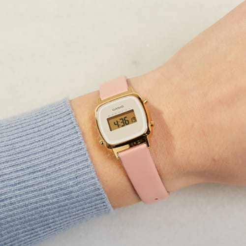 Модель с квадратным компактным корпусом отображает время в цифровом формате. Часы Vintage Mini дополнены розовым ремешком из натуральной кожи. Такое исполнение стильно смотрится на изящном запястье. Японский кварцевый механизм работает от батарейки, рассчитанной на 2 года службы. Циферблат защищён акриловым стеклом, устойчивым к ударам. Золотистый корпус из полимерного материала. Автоматический календарь, 7 таймеров, будильник, секундомер с точностью до 1/10 доли секунды. Габариты: 24,6 x 30,3 x 7,3 мм.