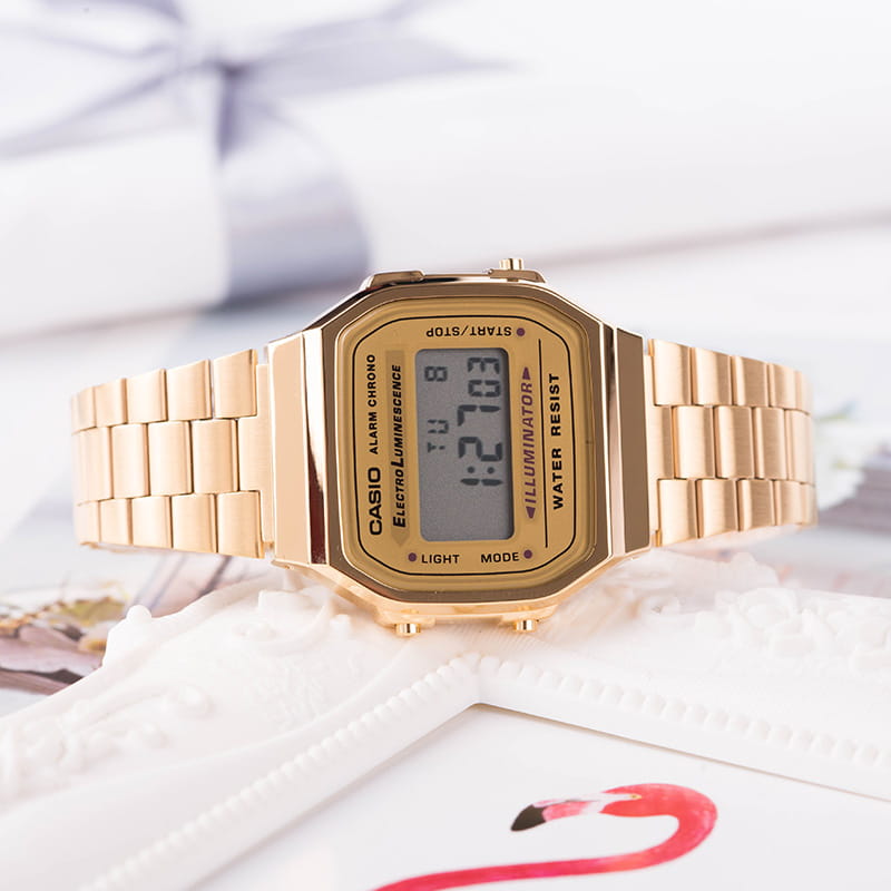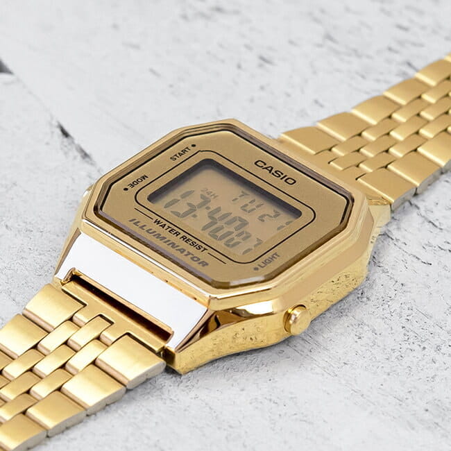 Электронные часы Casio Vintage LA680WGA-1B из нержавеющей стали с IP-покрытиемIP-покрытиеМетод ионного напыления. Демонстрирует повышенную устойчивость к истиранию, окислению и химическим веществам. Под воздействием высокого давления и температуры около 1500°C молекулы металла надёжно соединяются с частицами корпуса часов.. Водостойкость WR 30. Циферблат подсвечивается светодиодомСветодиодная подсветкаСветодиодная или LED-подсветка обеспечивает появление яркого холодного свечения за счёт LED-элементов - маленьких лампочек. Они потребляют минимальное количество энергии, чаще всего можно встретить 1 светодиод, в нижней части циферблата.. СекундомерСекундомерСекундоме́р — прибор, способный измерять интервалы времени с точностью до долей секунды. с точностью показаний 1/100с и временем измерения 1ч. Сплит-хронографСплит-хронографИспользуется для измерения продолжительности нескольких временных отрезков, начинающихся одновременно, а заканчивающихся в разное время.. Батарея рассчитана на 5 лет. Водонепроницаемость в соответствии с DIN 8310/ISO 2281. Задняя крышка крепится на 4-х винтах.