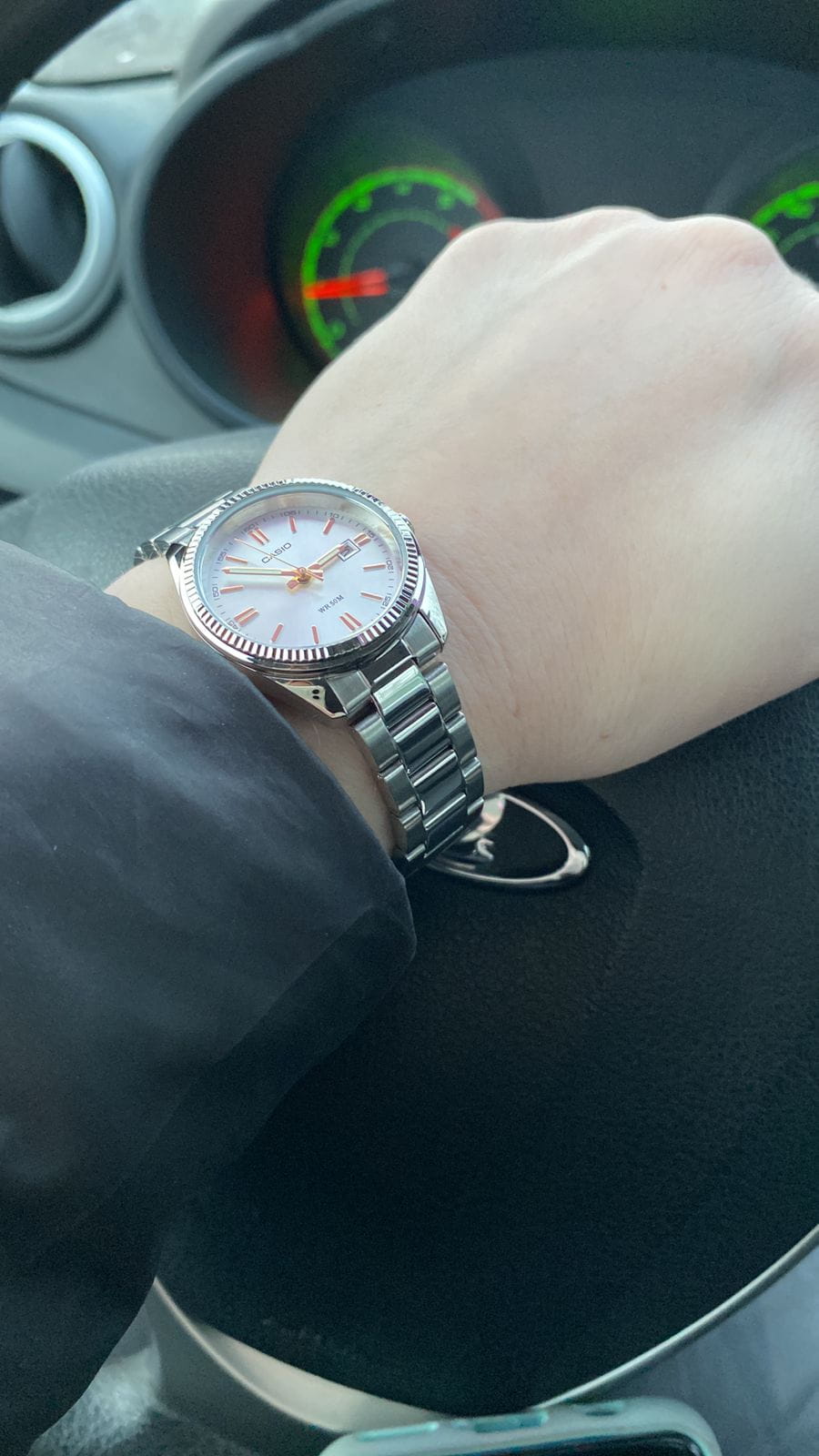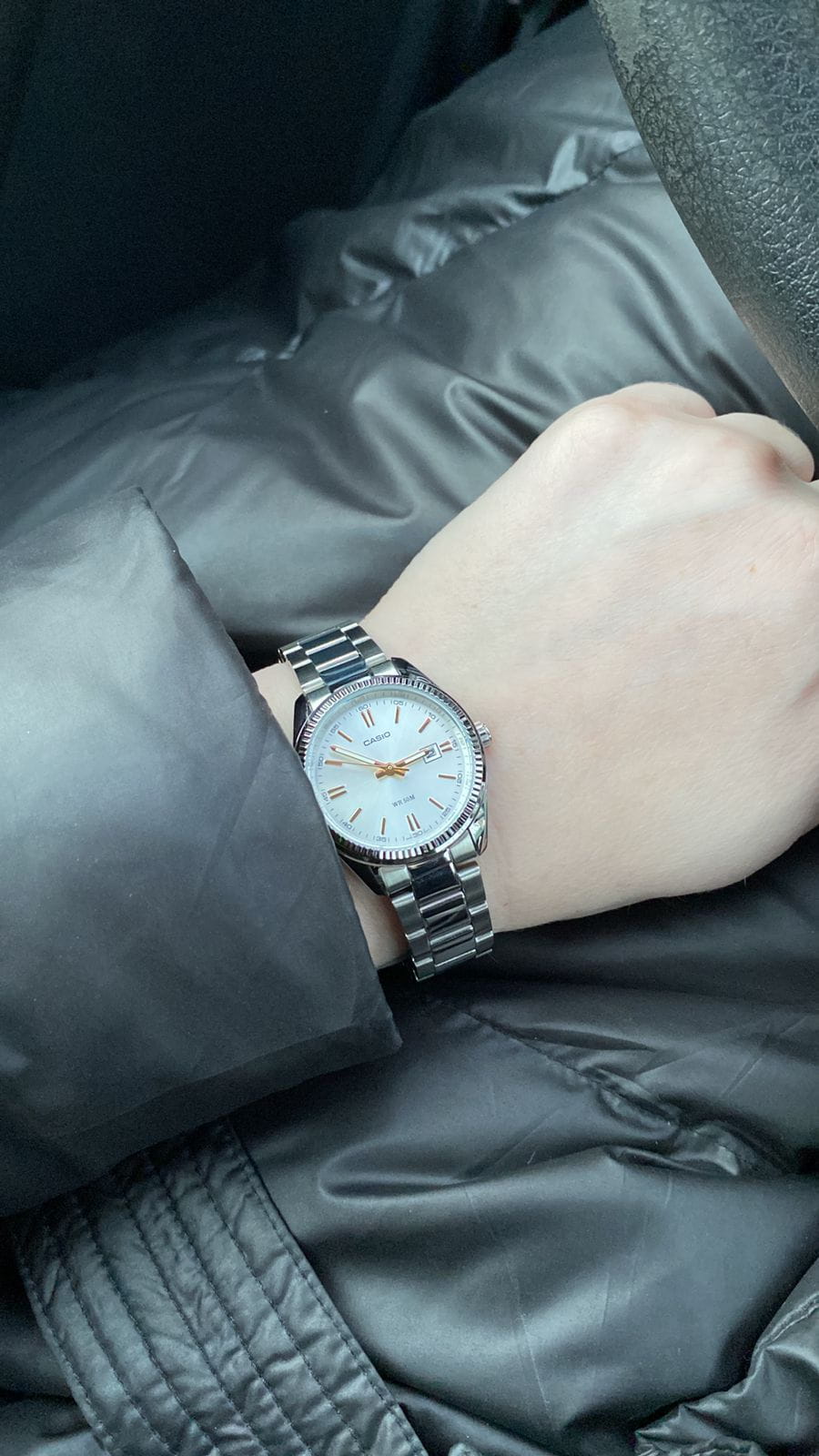 Часики очень крутые. Красиво смотрятся на руке, именно такие и хотела. На руке смотрятся достаточно аккуратно ничего лишнего, покупкой довольна. Спасибо!