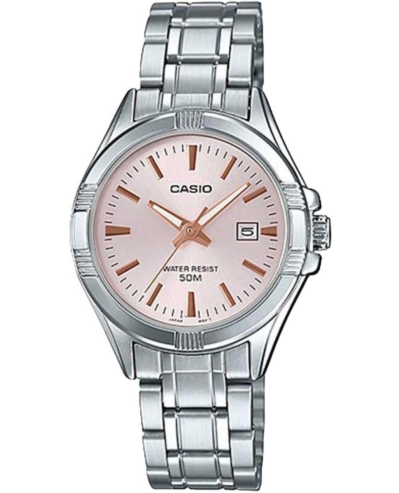 Аккуратные часы Casio Collection LTP-1308D-4A в стиле casual станут отличным дополнением к вашему образу. Standard. Женские часы с круглым корпусом. Циферблат с люминесцентным покрытиемЛюминесцентное покрытиеПозволяет считывать показания времени в темноте. Производители наносят на стрелки, часовые индексы, безель или поверхность циферблата светонакопительный состав, дающий холодное свечение. стрелок, дополнен минеральным стекломМинеральное стеклоМинеральное стекло представляет собой искусственно выращенный минерал кварца. Такое стекло отличается особой устойчивостью к повреждениям и царапинам. Уступает по некоторым качествам сапфировому стеклу. , устойчивым к мелким механическим повреждениям. Окошко даты находится в положении 3 часа. Заводная головка с защитой. Батарейка рассчитана на 3 года. Браслет с раскладной застёжкойРаскладная застёжкаТакой тип застёжки используется только на браслетах из металла. Она никогда не раскрывается полностью, происходит разделение на 2 и более частей. Раскладывающая застёжка снизит вероятность потери часов к минимуму.. Класс водозащиты: 50 метров, позволит защитить корпус от случайных брызг или капель дождя.