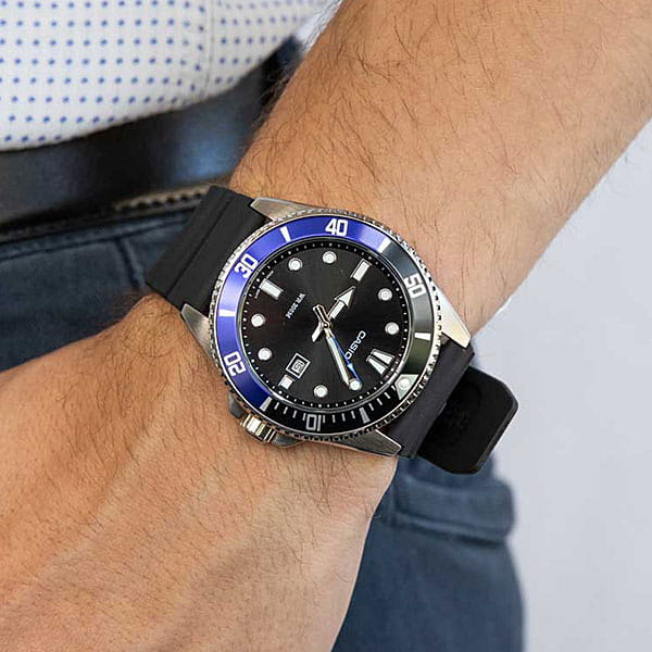 Японские мужские кварцевые часы с минеральным стекломМинеральное стеклоМинеральное стекло представляет собой искусственно выращенный минерал кварца. Такое стекло отличается особой устойчивостью к повреждениям и царапинам. Уступает по некоторым качествам сапфировому стеклу. Casio Collection MDV-107-1A2, кварцевый механизм с высокой точностью. Корпус часов изготовлен из нержавеющей стали. Вращающийся безельБезельВнешний ободок, закрепляющий стекло. В спортивных часах так называется поворотное кольцо с делениями на циферблате, выполняет роль таймера – замеряет отрезки времени на шкале. Неподвижный безель – элемент декора. Однонаправленно вращающийся безель на дайверских часах позволяет фиксировать моменты погружения и выныривания на поверхность. из нержавеющей стали с IP-покрытиемIP-покрытиеМетод ионного напыления. Демонстрирует повышенную устойчивость к истиранию, окислению и химическим веществам. Под воздействием высокого давления и температуры около 1500°C молекулы металла надёжно соединяются с частицами корпуса часов.. Стрелки с люминесцентным покрытиемЛюминесцентное покрытиеПозволяет считывать показания времени в темноте. Производители наносят на стрелки, часовые индексы, безель или поверхность циферблата светонакопительный состав, дающий холодное свечение.. Окошко даты находится в положении 3 часа. Класс водозащиты: 200 метров, позволит плавать, нырять и заниматься другими водными видами спорта. Ремешок с классической застежкой.