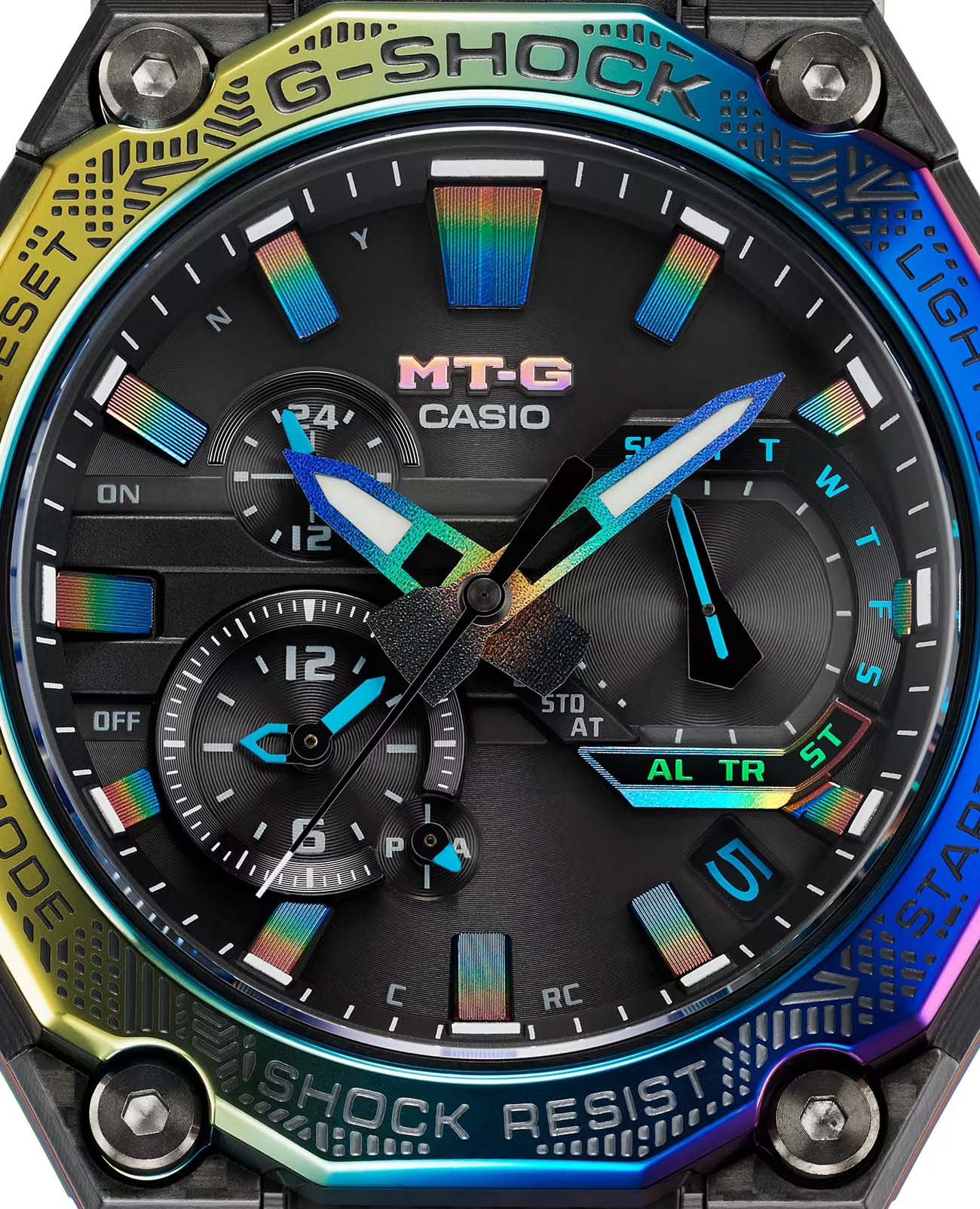 Поколение премиальной стальной серии G-Shock MTG в черном карбоново-стальном корпусе с красными деталями циферблата.