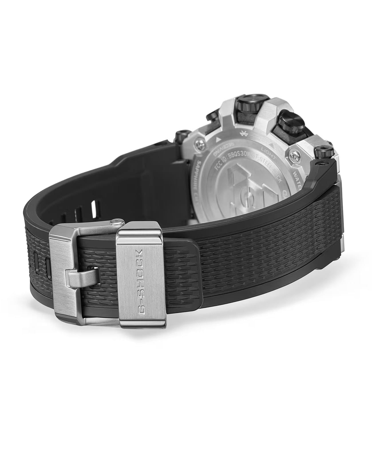 Спортивные японские мужские часы с секундомеромСекундомерСекундоме́р — прибор, способный измерять интервалы времени с точностью до долей секунды. и хронографомХронографФункция позволяет измерять отрезки времени с особой точностью: часы, минуты, секунды. Верным признаком хронографа является наличие на циферблате 3 дополнительных окошек-счётчиков. Casio G-Shock MTG-B3000-1A, кварцевый механизм с высокой точностью. Питание от солнечной энергии Tough Solar - солнечные батарейки большой мощности, индикатор заряда батареи. Функция автоматического сохранения энергии. Время работы аккумулятора без подзарядки приблизительно 5 месяцев, при включенной функции сохранения энергии приблизительно 18 месяцев. Ударопрочный корпусУдаропрочный корпусМеханизм заключён в корпус, выполненный из современных материалов, устойчивых к ударам, механическим повреждениям и падению с высоты: инновационный пластик, карбон, нержавеющая сталь, титан. защищает механизм от ударов и вибрации. . СекундомерСекундомерСекундоме́р — прибор, способный измерять интервалы времени с точностью до долей секунды. с точностью показаний 1с и временем измерения 24ч. Мировое времяМировое время Полезное часовое усложнение, отображающее время в основных городах и известных областях по всему миру, оно связано с часовыми поясами, удобно для путешественников и бизнесменов. – 27 часовых поясов. Автоматический переход на зимнее и летнее время, возможность включения/отключения данной функции. Переключение между домашним и мировым временем. Беспроводная технология BluetoothBluetoothСовременная технология, позволяющая синхронизировать часы с телефоном и переносить данные. Часы с Bluetooth расширяют возможности вашего смартфона и делают его использование ещё более удобным. со сверхнизким потреблением энергии для синхронизации со смартфоном. При подключении к смартфону часы корректируют текущее время, настройки мирового времени (300 городов), таймера и будильника. Функция поиска телефона. Автоматическое подключение к серверу времени через смартфон для корректировки текущего и настроек мирового времени. Функции перемещения стрелок для беспрепятственного просмотра информации на дисплее, отключения/включения звука, поиска телефона. Задняя крышка и ушки крепятся на винтах. Класс водозащиты: 200 метров, позволит плавать, нырять и заниматься другими водными видами спорта. Ремешок из полимерного материала на стандартной застежке.