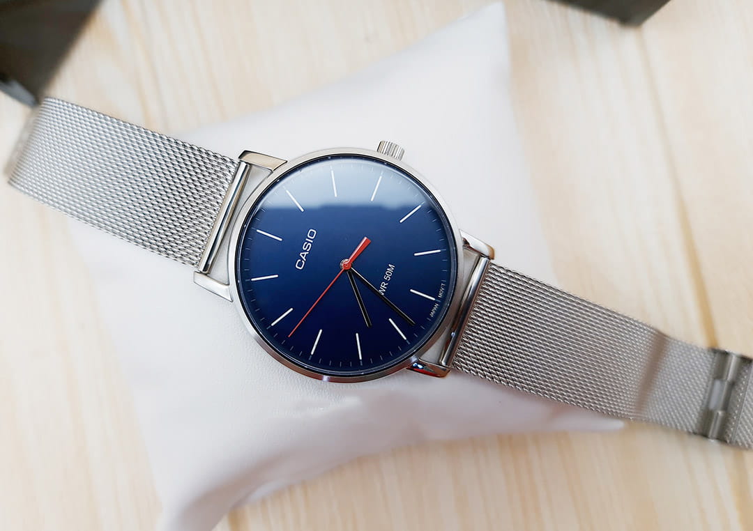 Японские мужские часы с минеральным стекломМинеральное стеклоМинеральное стекло представляет собой искусственно выращенный минерал кварца. Такое стекло отличается особой устойчивостью к повреждениям и царапинам. Уступает по некоторым качествам сапфировому стеклу. Casio Collection MTP-E171M-2E, кварцевый механизм с высокой точностью. Класс водозащиты: 50 метров, позволит защитить корпус от случайных брызг или капель дождя. Корпус часов изготовлен из стали. Стальной браслет на раскладной застёжкеРаскладная застёжкаТакой тип застёжки используется только на браслетах из металла. Она никогда не раскрывается полностью, происходит разделение на 2 и более частей. Раскладывающая застёжка снизит вероятность потери часов к минимуму..