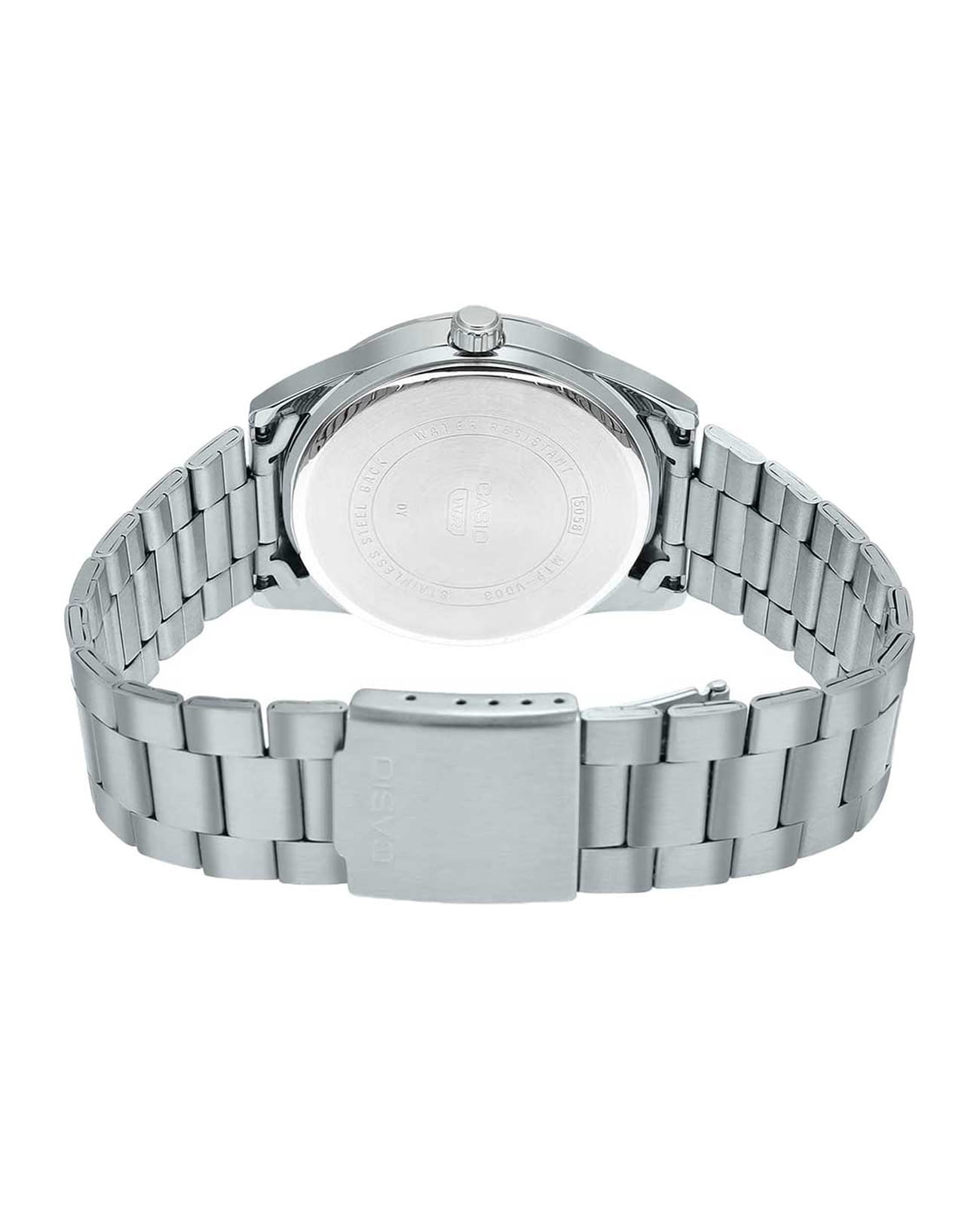Японские мужские кварцевые часы с минеральным стекломМинеральное стеклоМинеральное стекло представляет собой искусственно выращенный минерал кварца. Такое стекло отличается особой устойчивостью к повреждениям и царапинам. Уступает по некоторым качествам сапфировому стеклу. Casio Collection MTP-VD03D-2A, кварцевый механизм с высокой точностью. Корпус часов изготовлен из нержавеющей стали. 12-ти и 24-х часовой формат времени. Циферблат с метками в виде штрихов. Стрелки с люминесцентным покрытиемЛюминесцентное покрытиеПозволяет считывать показания времени в темноте. Производители наносят на стрелки, часовые индексы, безель или поверхность циферблата светонакопительный состав, дающий холодное свечение.. Окошко даты находится в положении 3 часа. Батарея рассчитана на 3 года. Класс водозащиты: 50 метров, позволит защитить корпус от случайных брызг или капель дождя. Стальной браслет на раскладной застёжкеРаскладная застёжкаТакой тип застёжки используется только на браслетах из металла. Она никогда не раскрывается полностью, происходит разделение на 2 и более частей. Раскладывающая застёжка снизит вероятность потери часов к минимуму..