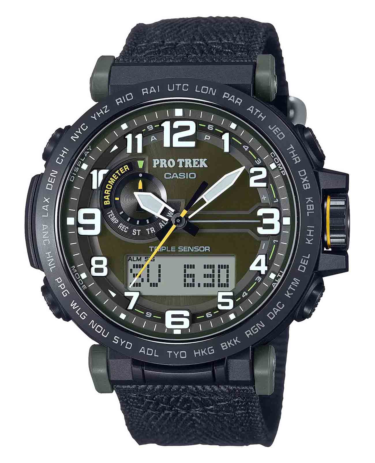 Любое ваше путешествие выйдет на новый уровень благодаря этим часам из коллекции Pro Trek. Casio Pro Trek PRG-601YB-3 для активного отдыха. Корпус и ремешок выполнены из биопластика, который изготавливается из возобновляемых органических ресурсов. Питание от солнечной энергии Tough SolarTough SolarТехнология основана на подзарядке аккумулятора от источника солнечного света, специальная панель улавливает солнечные лучи и преобразует их в энергию для работы часов. Достаточно пары минут нахождения на солнце для функционирования часов в течении суток. - солнечные батарейки большой мощности, индикатор заряда батареи. Функция автоматического сохранения энергии. Время работы аккумулятора без подзарядки приблизительно 7 месяцев, при включенной функции сохранения энергии приблизительно 25 месяцев. Модуль часов рассчитан на работу при низких температурах до -10°С/14°F. Двойная подcветка: циферблат и ЖК-дисплеи подсвечиваются светодиодом, благодаря наличию функции задержки, после отпускания кнопки освещение горит еще несколько секунд. Настраиваемое послесвечение 1,5 или 3сек. Цвет подсветки: белый. Необритовое покрытиеПодсветка NeobriteИспользование светонакопительных составов на основе сульфида цинка или алюмината стронция, яркий свет можно наблюдать на протяжении 6-10 часов после «зарядки» часов около источника света. обеспечивает длительное послесвечение в темноте даже после кратковременного нахождения на свету. 12-ти и 24-х часовой формат времени. СекундомерСекундомерСекундоме́р — прибор, способный измерять интервалы времени с точностью до долей секунды. с точностью показаний 1/100с и временем измерения 24ч. Сплит-хронографСплит-хронографИспользуется для измерения продолжительности нескольких временных отрезков, начинающихся одновременно, а заканчивающихся в разное время.. ТаймерТаймерОтсчитывает секунды в обратном направлении в заданном интервале времени. обратного отсчета от 1с до 1ч. Мировое времяМировое время Полезное часовое усложнение, отображающее время в основных городах и известных областях по всему миру, оно связано с часовыми поясами, удобно для путешественников и бизнесменов. – 29 городов (29 часовых поясов), всемирное координированное время (UTC). Функция включения/отключения летнего времени. Функция автоматической коррекции положения стрелок проверяет положение стрелок каждый час и корректирует его в случае необходимости. Технология Triple Sensor позволяет точно и легко определять сторону света, температуру и атмосферное давление. Термометр от -10° до +60°С с точностью 0,1°C. Барометр - измерение атмосферного давления от 260 до 1100 гПа (от 195 до 825 мм рт. ст.). Встроенный цифровой компас. Диапазон измерения от 0° до 359° с точностью 1°. Высотомер - встроенный датчик барометрического давления с возможностью вывода результатов в единицах высоты над уровнем моря (от -700 до 10000 метров). График набора высоты. Хранение до 30 записей о высотных точках рельефа местности - измеренной абсолютной высоты, даты и времени. Система Smart Access с помощью электронной заводной головки обеспечивает простой и удобный доступ ко всем важным функциям часов. Нажатие или поворот заводной головки позволяет переключаться между различными режимами и активировать будильникБудильникБуди́льник — часы, в заданный момент времени подающие звуковой, световой и/или в редких случаях друго