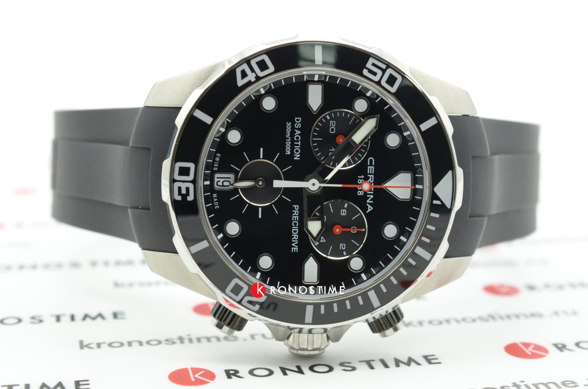 Наручные часы отличаются привлекательным дизайном, чёрный циферблат имеет крупную индикацию времени, расставлены акценты красного цвета. Модель комплектуется кварцевым механизмом ETA Precidrive™Precidrive™Инновационный кварцевый механизм Certina. Часы, оснащённые этим швейцарским калибром, приравниваются к точности к сертифицированным хронометрам, точность хода составляет +/-10 секунд в год., отличающимся отменной точностью хода. Вращающийся безельБезельВнешний ободок, закрепляющий стекло. В спортивных часах так называется поворотное кольцо с делениями на циферблате, выполняет роль таймера – замеряет отрезки времени на шкале. Неподвижный безель – элемент декора. Однонаправленно вращающийся безель на дайверских часах позволяет фиксировать моменты погружения и выныривания на поверхность. имеет чёрное PVD-покрытиеPVDУльтратонкое покрытие наносится в технике вакуумного напыления, сочетает в себе нитрид титана особой прочности со слоем золота или оксида хрома. Несёт в себе декоративную или защитную функцию., защищающее от царапин. Сапфировое стекло с антибликовой обработкой. Силиконовый ремешок. Индикатор EOLEOLПредставляет собой систему, уведомляющую владельца часов о необходимости замены элемента питания. За 2 недели до полного разряда батарейки секундная стрелка перестаёт ходить чётко и начинает перепрыгивать на 3-4 деления.. Секундомер, хронографХронографФункция позволяет измерять отрезки времени с особой точностью: часы, минуты, секунды. Верным признаком хронографа является наличие на циферблате 3 дополнительных окошек-счётчиков., окошко даты. Диаметр корпуса: 43 мм.