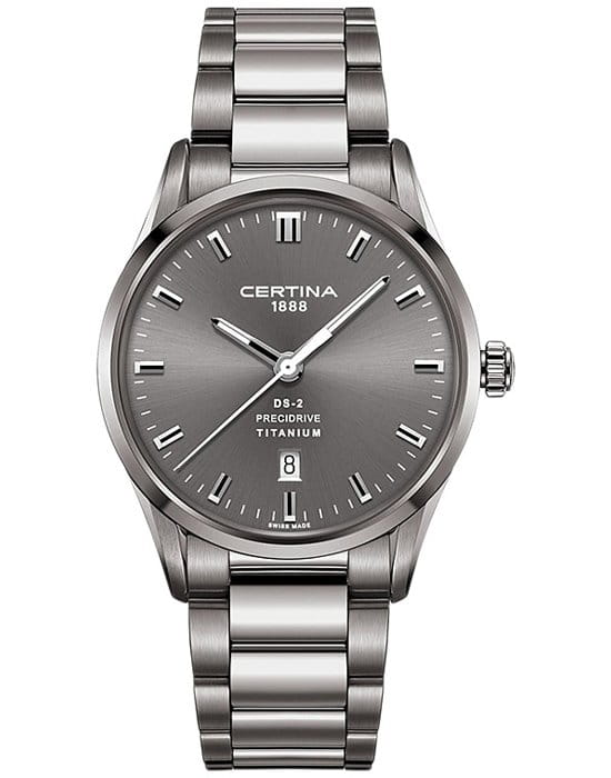 Наручные часы не имеют лишних деталей, всё выглядит строго и лаконично. За высокую точность хода в ответе швейцарский кварцевый механизм ETA F06.411 Precidrive™Precidrive™Инновационный кварцевый механизм Certina. Часы, оснащённые этим швейцарским калибром, приравниваются к точности к сертифицированным хронометрам, точность хода составляет +/-10 секунд в год.. Корпус и браслет изготовлены из титана с антимагнитными свойствами. Концепция Двойной Надёжности Double SecurityDS ConceptDouble Security Concept, обозначает двойную надёжность и безупречную точность часов Certina. Двойная система защиты подразумевает обеспечение максимальной устойчивости к ударам и высоких показателей водонепроницаемости.. Сапфировое стекло с односторонним покрытием «антиблик». Водостойкость 100 метров. Люминесцентная подсветкаЛюминесцентное покрытиеПозволяет считывать показания времени в темноте. Производители наносят на стрелки, часовые индексы, безель или поверхность циферблата светонакопительный состав, дающий холодное свечение.. Стальная . Окошко текущего числа, функция EOLEOLПредставляет собой систему, уведомляющую владельца часов о необходимости замены элемента питания. За 2 недели до полного разряда батарейки секундная стрелка перестаёт ходить чётко и начинает перепрыгивать на 3-4 деления.. Диаметр корпуса: 40 мм.