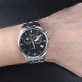 Швейцарские мужские часы Certina DS-8 Chronograph Moon Phase C033.450.11.051.00 из коллекции DS-8 привлекают оригинальным дизайном и абсолютной точностью хода. Модель, благодаря классической цветовой гамме и отсутствию броских деталей, станет универсальным аксессуаром к вашему образу. Брендовый хронографХронографФункция позволяет измерять отрезки времени с особой точностью: часы, минуты, секунды. Верным признаком хронографа является наличие на циферблате 3 дополнительных окошек-счётчиков. измеряет время с высокой точностью, что обеспечивает швейцарский кварцевый калибр ETA G10.962 Precidrive™Precidrive™Инновационный кварцевый механизм Certina. Часы, оснащённые этим швейцарским калибром, приравниваются к точности к сертифицированным хронометрам, точность хода составляет +/-10 секунд в год.. Браслет из нержавеющей стали. Сапфировое стекло с двухсторонним антибликовым покрытием. Корпус из нержавеющей стали 316L. Водостойкость 10 бар. Люминесцентная подсветкаЛюминесцентное покрытиеПозволяет считывать показания времени в темноте. Производители наносят на стрелки, часовые индексы, безель или поверхность циферблата светонакопительный состав, дающий холодное свечение.. Задняя крышка с гравировкой. Секундомер, дата, индикатор EOLEOLПредставляет собой систему, уведомляющую владельца часов о необходимости замены элемента питания. За 2 недели до полного разряда батарейки секундная стрелка перестаёт ходить чётко и начинает перепрыгивать на 3-4 деления., отображение лунных фаз. Диаметр корпуса: 42 мм. Производство и сборка: Швейцария.