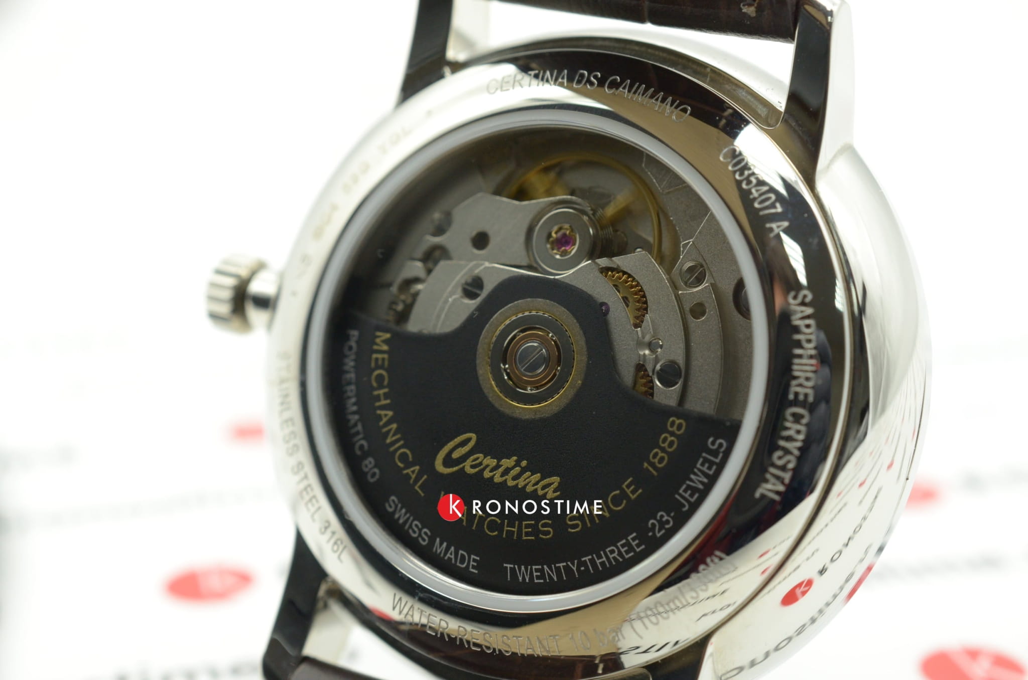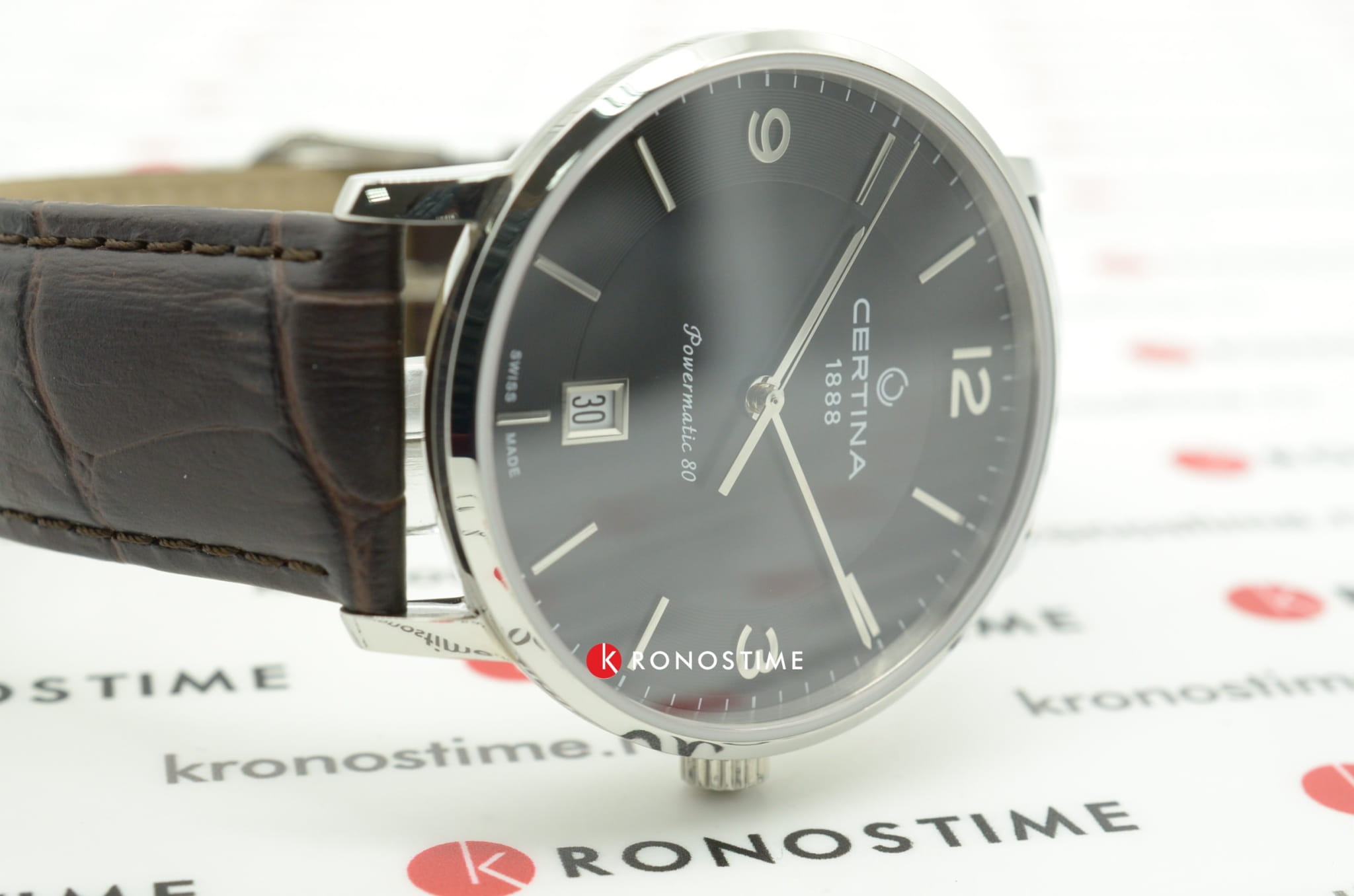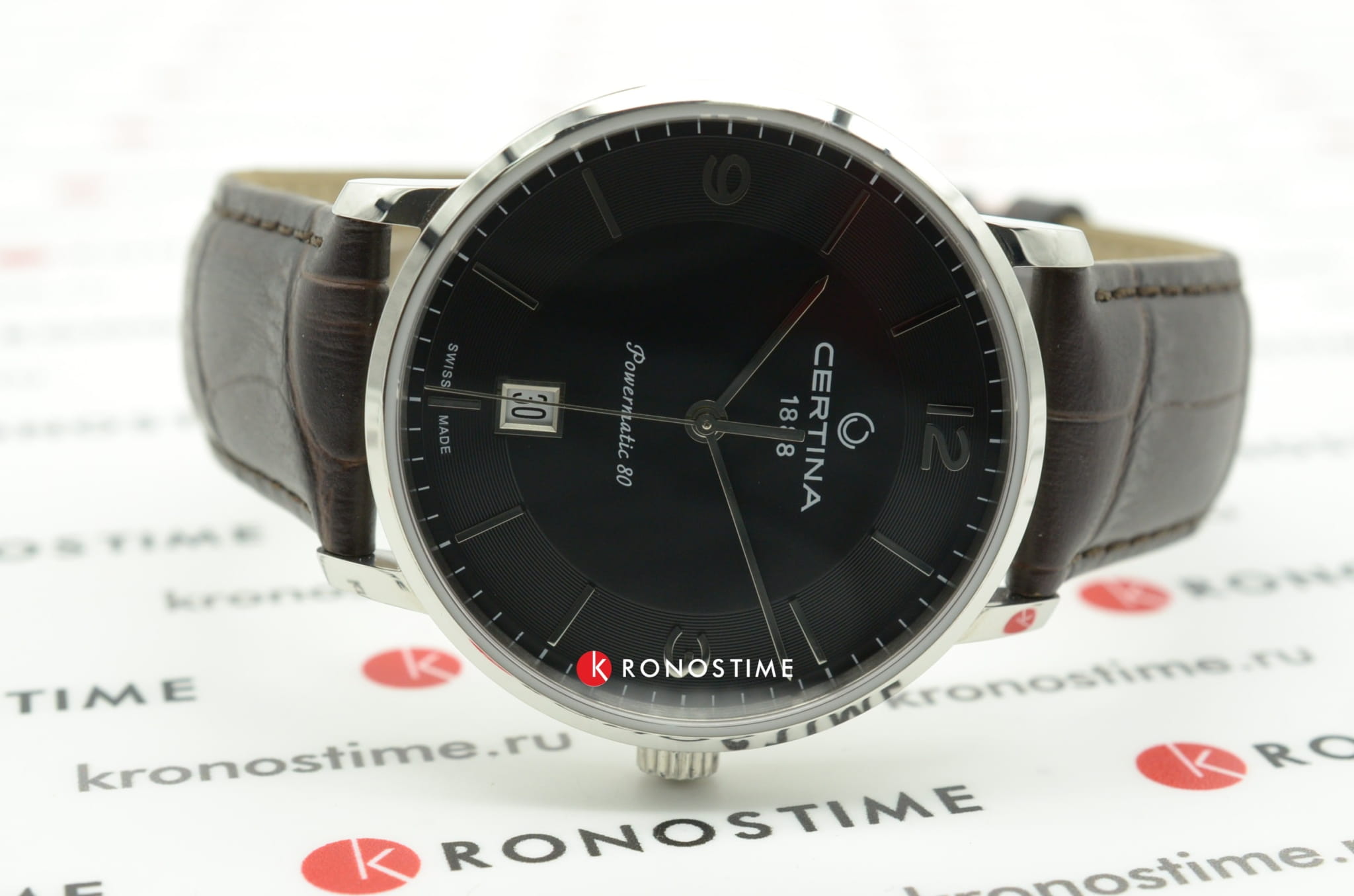 Модель выполнена в классическом стиле, благодаря чему она сохраняет актуальность во все времена. Цифру 6 заменяет прямоугольное окошко индикации текущего числа. Часы заводятся от движений руки носителя, швейцарский механизм ETA Powermatic 80Powermatic 80Эксклюзивный калибр от швейцарской компании ETA с увеличенным запасом хода до 80 часов за счёт удлинённой заводной пружины. Характеризуется улучшенной системой спуска со сниженным трением. сохраняет запас хода до 80-часов. Прозрачная задняя крышка. Сапфировое стекло. Стальной корпус с реализацией концепции DS ConceptDS ConceptDouble Security Concept, обозначает двойную надёжность и безупречную точность часов Certina. Двойная система защиты подразумевает обеспечение максимальной устойчивости к ударам и высоких показателей водонепроницаемости.. Ремешок из натуральной кожи. Водонепроницаемость 10 бар. Диаметр корпуса: 39 мм.