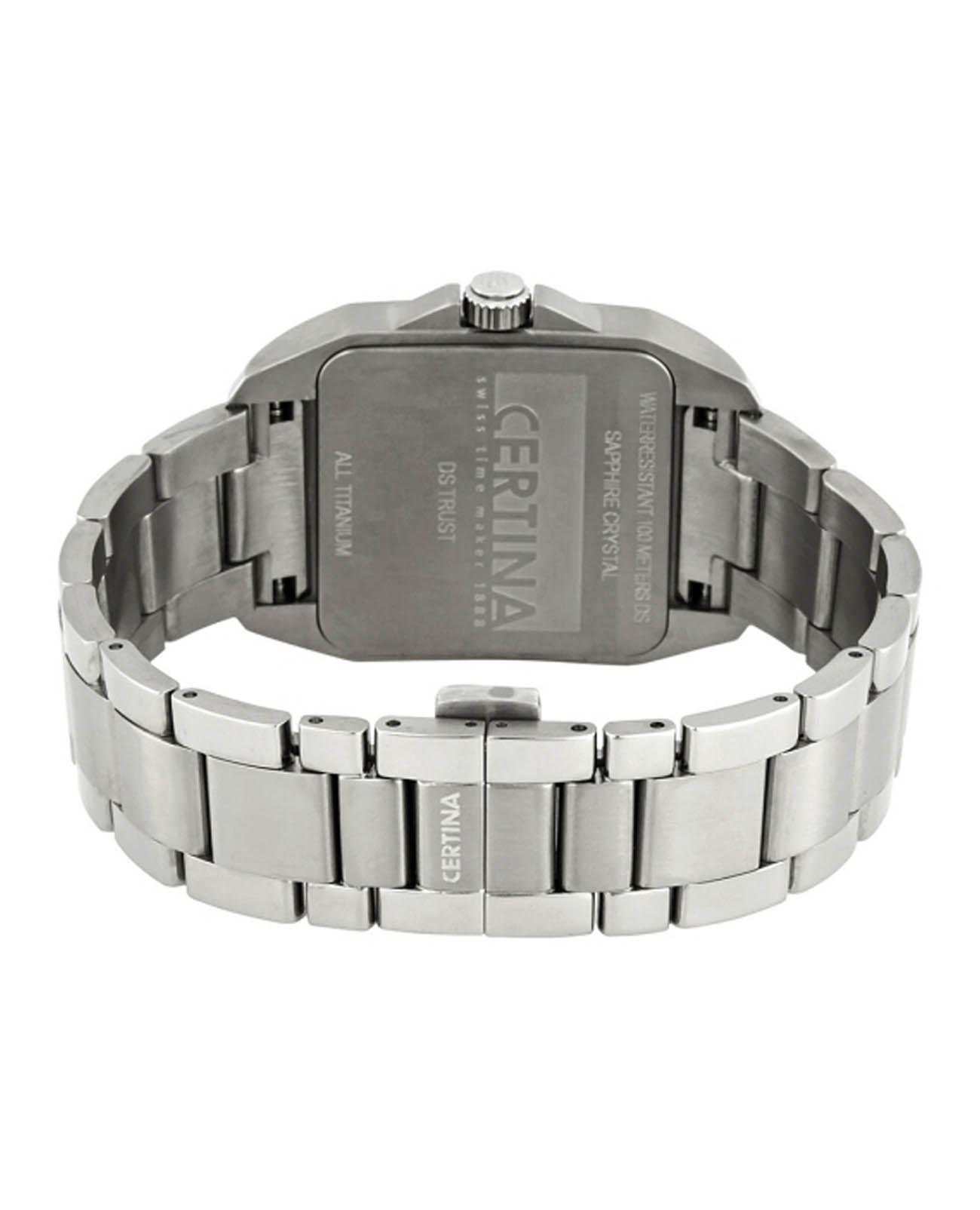 Мужские швейцарские часы Certina DS Trust C0195104408700, кварцевый механизм с высокой точностью. Сапфировое стеклоСапфировое стеклоПрочный и надёжный материал из кристалла сапфира синтетического происхождения, характеризующийся особой твёрдостью и устойчивостью к царапинам и повреждениям. устойчивое к появлению царапин, обладающее высокой прозрачностью. Корпус изготовлен из нержавеющей стали. Стрелки с люминесцентным покрытиемЛюминесцентное покрытиеПозволяет считывать показания времени в темноте. Производители наносят на стрелки, часовые индексы, безель или поверхность циферблата светонакопительный состав, дающий холодное свечение.. Окошко даты находится в положении 6 часов. Класс водозащиты: 100 метров, позволит плавать, нырять и заниматься другими водными видами спорта. Стальной браслет на застёжке-бабочке с кнопкамиЗастёжка "бабочка"Такой вид застёжки дополняется предохранителями, помогающими избежать случайного раскрытия браслета. Обладают изящным исполнением. .