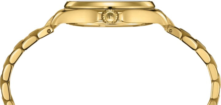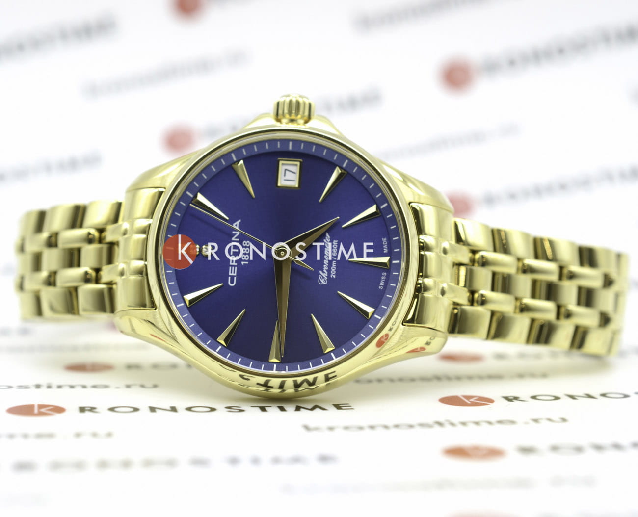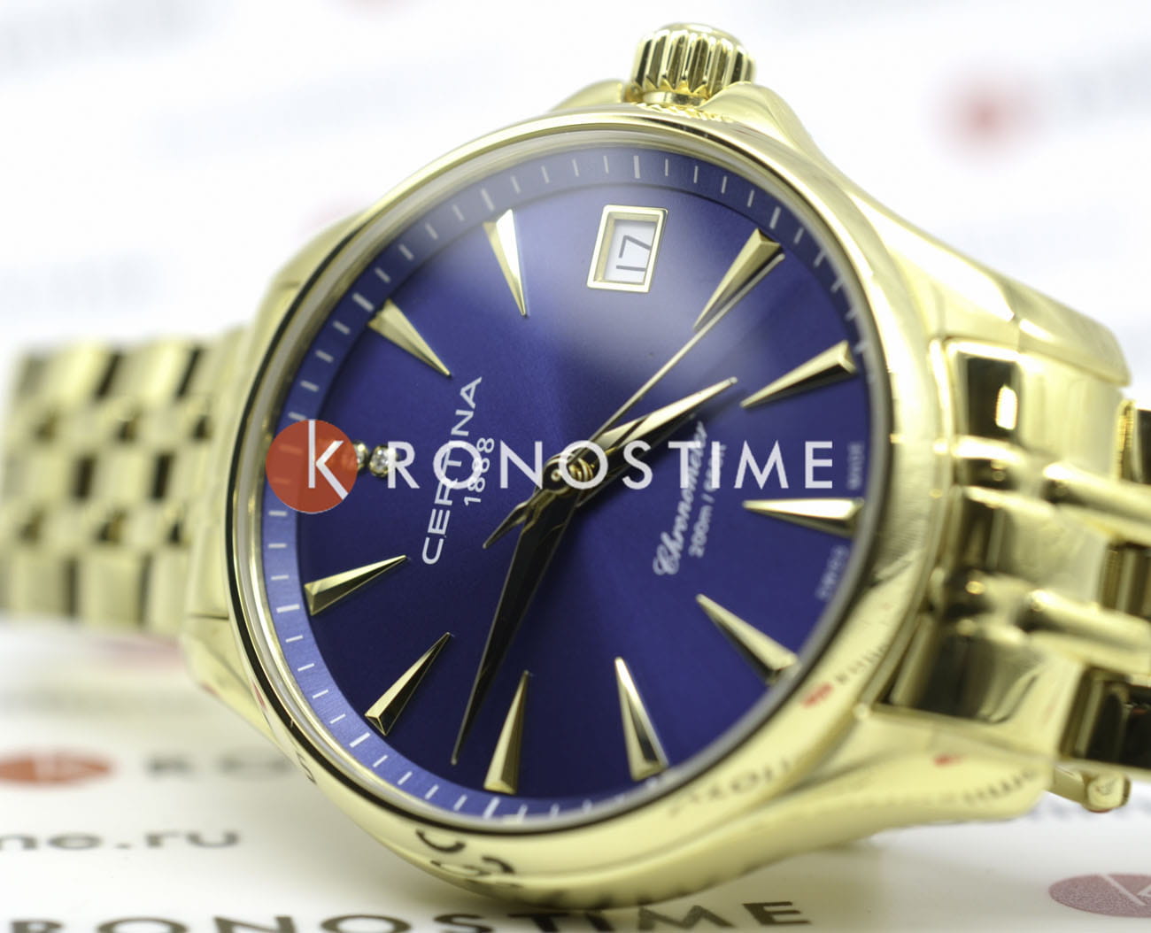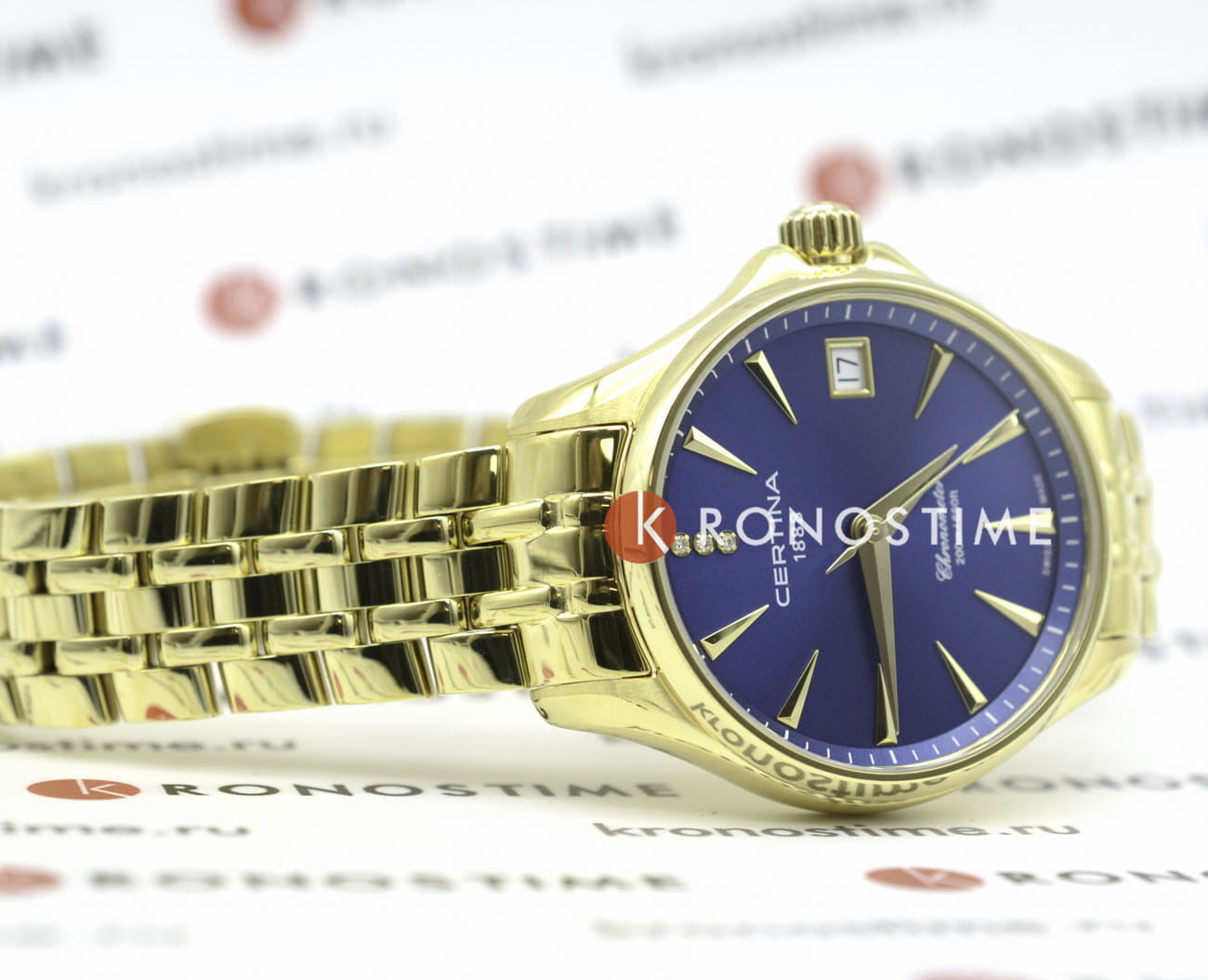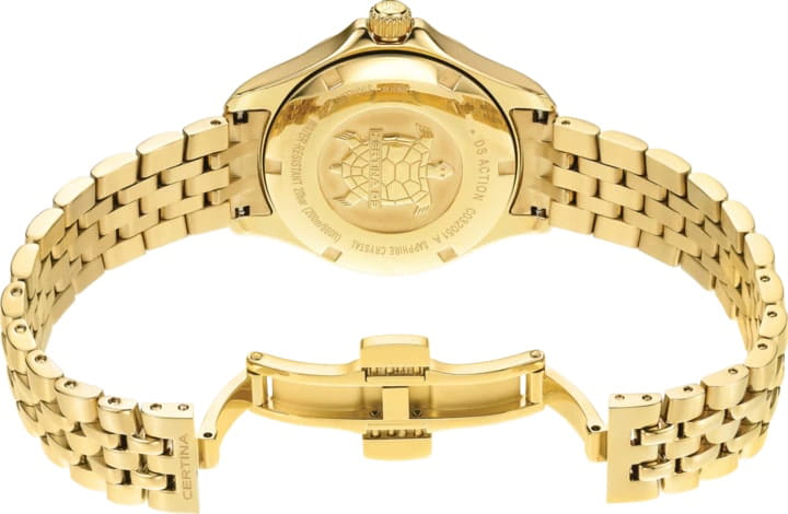 Аксессуар обладает изящным силуэтом, отражающим классический стиль и элегантность. Циферблат украшен 3 роскошными бриллиантами оттенка Top Wesselton. Часы комплектуются высокоточным кварцевым калибром F06.412 от швейцарской компании ETA, высокая точность механизма подтверждается сертификатом хронометра COSCСертификат COSCОфициальный сертификат, подтверждающий то, что часы ходят с особо высокой точностью. Для получения документа часы подвергаются тестовым испытаниям, разработанным швейцарским институтом тестирования хронометров COSC. Допустимая норма для механических часов -4/+6 секунд в день, для кварцевых моделей +/- 0,07 секунд в день.. Концепция DS ConceptDS ConceptDouble Security Concept, обозначает двойную надёжность и безупречную точность часов Certina. Двойная система защиты подразумевает обеспечение максимальной устойчивости к ударам и высоких показателей водонепроницаемости. гарантирует повышенную ударопрочность часов и сохранение водонепроницаемости до 20 бар. Одностороннее антибликовое покрытие сапфирового стеклаСапфировое стеклоПрочный и надёжный материал из кристалла сапфира синтетического происхождения, характеризующийся особой твёрдостью и устойчивостью к царапинам и повреждениям.. Корпус часов изготовлен из нержавеющей стали 316L с PVD-покрытиемPVDУльтратонкое покрытие наносится в технике вакуумного напыления, сочетает в себе нитрид титана особой прочности со слоем золота или оксида хрома. Несёт в себе декоративную или защитную функцию.. Стальной браслет с PVD-покрытиемPVDУльтратонкое покрытие наносится в технике вакуумного напыления, сочетает в себе нитрид титана особой прочности со слоем золота или оксида хрома. Несёт в себе декоративную или защитную функцию. на застёжке-бабочке с кнопкамиЗастёжка "бабочка"Такой вид застёжки дополняется предохранителями, помогающими избежать случайного раскрытия браслета. Обладают изящным исполнением. . Окошко даты, функция EOLEOLПредставляет собой систему, уведомляющую владельца часов о необходимости замены элемента питания. За 2 недели до полного разряда батарейки секундная стрелка перестаёт ходить чётко и начинает перепрыгивать на 3-4 деления.. Диаметр корпуса: 33,8 мм.