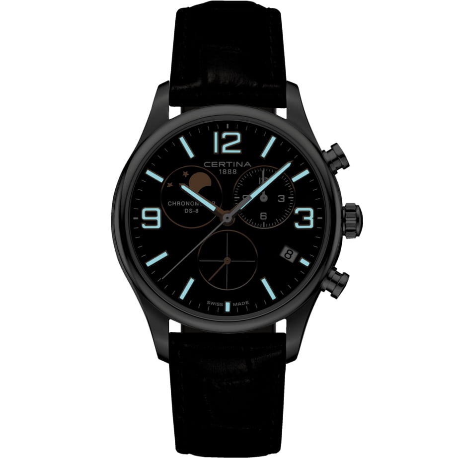 Указатель фазы Луны, одно из классических усложнений в часовом искусстве, выглядит в модели Certina DS-8 Moon Phase C033.460.16.087.00 особенно современно и минималистично. Хронометр, сертифицированный COSCСертификат COSCОфициальный сертификат, подтверждающий то, что часы ходят с особо высокой точностью. Для получения документа часы подвергаются тестовым испытаниям, разработанным швейцарским институтом тестирования хронометров COSC. Допустимая норма для механических часов -4/+6 секунд в день, для кварцевых моделей +/- 0,07 секунд в день., дополнен стильными цветовыми акцентами, подчеркивающими гармоничность дизайна.
