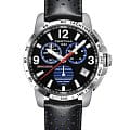 Наручные часы в спортивном стиле привлекают внимание синими деталями, что символизирует скоростное напряжение на гоночной трассе. Отличным дополнением стал кожаный ремешок с перфорацией из натурального материала. Кварцевый швейцарский механизм ETA G10.212 Precidrive™Precidrive™Инновационный кварцевый механизм Certina. Часы, оснащённые этим швейцарским калибром, приравниваются к точности к сертифицированным хронометрам, точность хода составляет +/-10 секунд в год. с повышенной точностью хода, подтверждённой сертификатом COSCСертификат COSCОфициальный сертификат, подтверждающий то, что часы ходят с особо высокой точностью. Для получения документа часы подвергаются тестовым испытаниям, разработанным швейцарским институтом тестирования хронометров COSC. Допустимая норма для механических часов -4/+6 секунд в день, для кварцевых моделей +/- 0,07 секунд в день.. Система DS ConceptDS ConceptDouble Security Concept, обозначает двойную надёжность и безупречную точность часов Certina. Двойная система защиты подразумевает обеспечение максимальной устойчивости к ударам и высоких показателей водонепроницаемости.. Двухстороннее антибликовое покрытие для стекла из сапфира. Стрелки и индексы с составом SuperLumiNovaЛюминесцентное покрытиеПозволяет считывать показания времени в темноте. Производители наносят на стрелки, часовые индексы, безель или поверхность циферблата светонакопительный состав, дающий холодное свечение.. Заводная головка с защитой. ХронографХронографФункция позволяет измерять отрезки времени с особой точностью: часы, минуты, секунды. Верным признаком хронографа является наличие на циферблате 3 дополнительных окошек-счётчиков., шкала тахиметраТахиметрРазмеченная шкала, располагается на ободке или безеле часов. Тахиметр позволяет рассчитать скорость на определённом участке пути, расстояние измеряется в километрах или милях., календарь, секундомер, индикатор EOLEOLПредставляет собой систему, уведомляющую владельца часов о необходимости замены элемента питания. За 2 недели до полного разряда батарейки секундная стрелка перестаёт ходить чётко и начинает перепрыгивать на 3-4 деления., Lap-функция измерения промежуточного времени (круга). Диаметр корпуса: 42 мм.