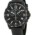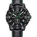 Чёрный кожаный ремешок с зелёными акцентами оснащён раскладной застёжкойРаскладная застёжкаТакой тип застёжки используется только на браслетах из металла. Она никогда не раскрывается полностью, происходит разделение на 2 и более частей. Раскладывающая застёжка снизит вероятность потери часов к минимуму., обеспечивающей комфортное ношение и надёжную фиксацию на запястье. Водонепроницаемость 100 метров (10 бар) делает эту модель идеальным выбором для плавания и сноркелинга.