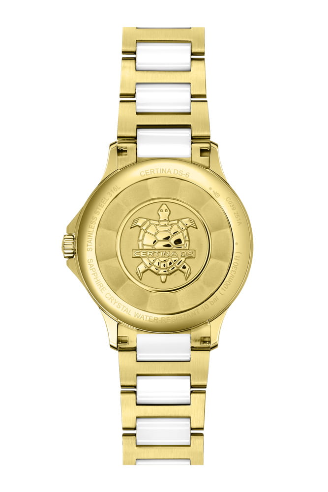 Женские швейцарские часы Certina DS-6 Lady C039.251.33.017.00, кварцевый механизм Precidrive™Precidrive™Инновационный кварцевый механизм Certina. Часы, оснащённые этим швейцарским калибром, приравниваются к точности к сертифицированным хронометрам, точность хода составляет +/-10 секунд в год. с высокой точностью. Сапфировое стеклоСапфировое стеклоПрочный и надёжный материал из кристалла сапфира синтетического происхождения, характеризующийся особой твёрдостью и устойчивостью к царапинам и повреждениям. устойчивое к появлению царапин, обладающее высокой прозрачностью. Класс водозащиты: 100 метров, позволит плавать, нырять и заниматься другими водными видами спорта. Апертура даты на отметке 6 часов. Корпус часов изготовлен из стали с PVD-покрытиемPVDУльтратонкое покрытие наносится в технике вакуумного напыления, сочетает в себе нитрид титана особой прочности со слоем золота или оксида хрома. Несёт в себе декоративную или защитную функцию..