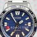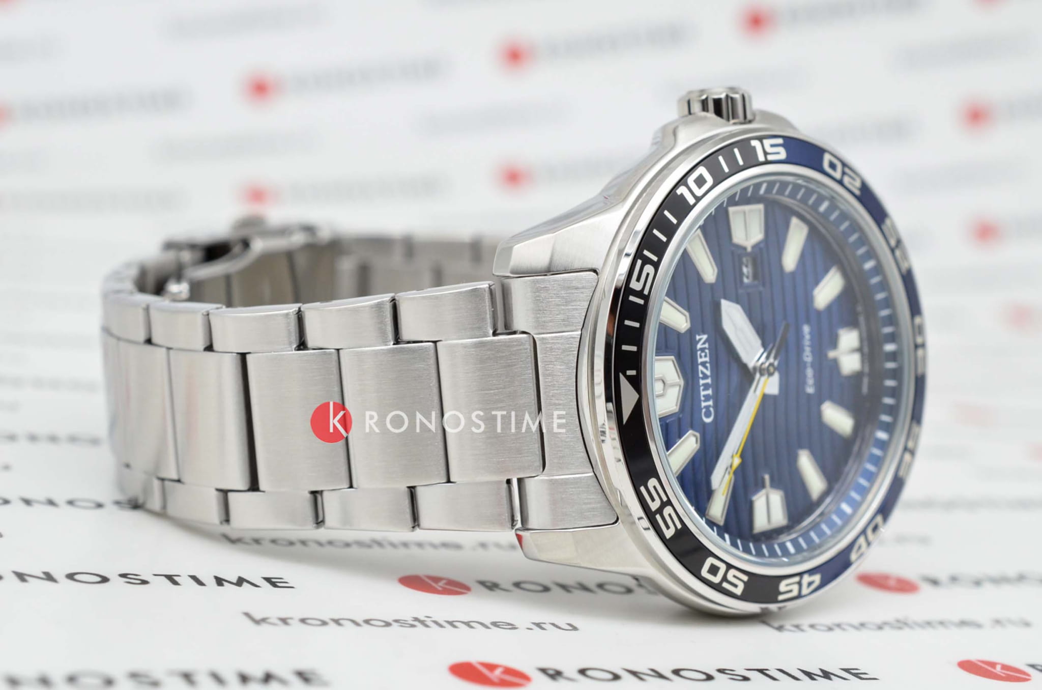 Часы Citizen AW1525-81L – это стильная и надежная модель японского производства, идеально подходящая для активного образа жизни. Корпус выполнен из высококачественной нержавеющей стали, в то время как на безельБезельВнешний ободок, закрепляющий стекло. В спортивных часах так называется поворотное кольцо с делениями на циферблате, выполняет роль таймера – замеряет отрезки времени на шкале. Неподвижный безель – элемент декора. Однонаправленно вращающийся безель на дайверских часах позволяет фиксировать моменты погружения и выныривания на поверхность. нанесено черное и синее PVD-покрытиеPVDУльтратонкое покрытие наносится в технике вакуумного напыления, сочетает в себе нитрид титана особой прочности со слоем золота или оксида хрома. Несёт в себе декоративную или защитную функцию., браслет также стальной. Синий циферблат украшен метками в виде штрихов и оснащен календарем с окошком даты. Защиту от повреждений обеспечивает прочное минеральное стеклоМинеральное стеклоМинеральное стекло представляет собой искусственно выращенный минерал кварца. Такое стекло отличается особой устойчивостью к повреждениям и царапинам. Уступает по некоторым качествам сапфировому стеклу., а водонепроницаемость до 100 метров позволяет не снимать часы во время плавания и занятий спортом. Внутри установлен надежный кварцевый механизм Citizen J810 с инновационной системой Eco-Drive, которая питается от солнечной энергии и не требует замены батарейки, обеспечивая запас хода до 240 дней. Стрелки и часовые метки с люминесцентным покрытиемЛюминесцентное покрытиеПозволяет считывать показания времени в темноте. Производители наносят на стрелки, часовые индексы, безель или поверхность циферблата светонакопительный состав, дающий холодное свечение. обеспечивают отличную читаемость даже в темноте. Функция индикации заряда EOLEOLПредставляет собой систему, уведомляющую владельца часов о необходимости замены элемента питания. За 2 недели до полного разряда батарейки секундная стрелка перестаёт ходить чётко и начинает перепрыгивать на 3-4 деления. подскажет, когда потребуется подзарядка. Корпус диаметром 45,9 мм, толщина 11,8 мм, ширина браслета 22 мм, вес модели составляет 160 граммов. Завинчивающаяся задняя крышка украшена фирменной гравировкой Eco-Drive, а заводная головка оснащена защитой. Надежная раскладная застёжкаРаскладная застёжкаТакой тип застёжки используется только на браслетах из металла. Она никогда не раскрывается полностью, происходит разделение на 2 и более частей. Раскладывающая застёжка снизит вероятность потери часов к минимуму. браслета с системой блокировки гарантирует комфортное и безопасное ношение.