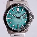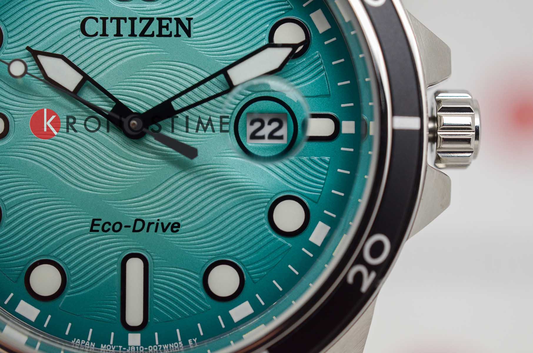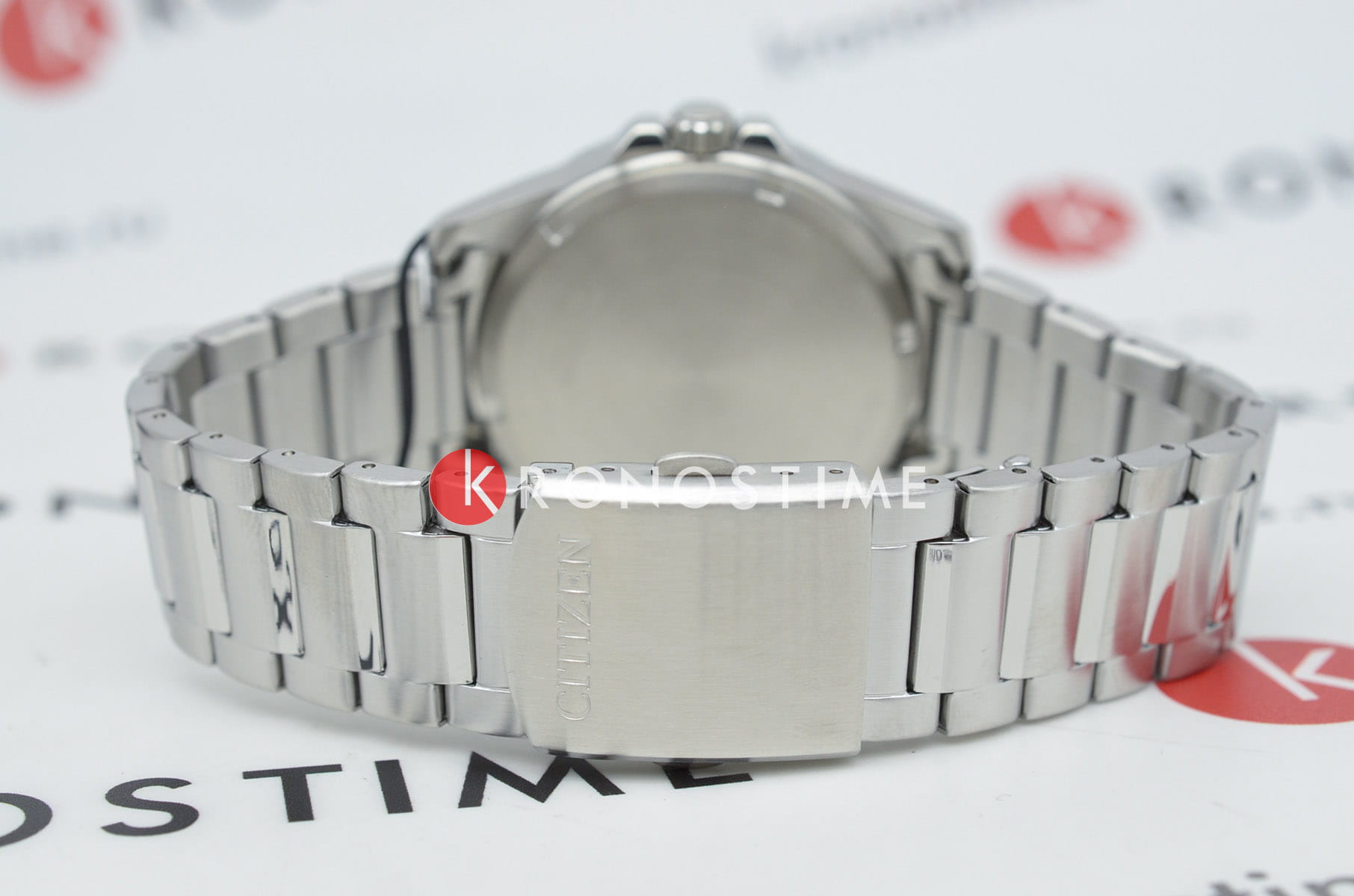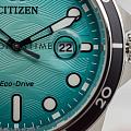 Citizen AW1816-89L — это стильные и практичные часы японского производства, которые станут отличным повседневным аксессуаром для активных мужчин. Модель оснащена современным кварцевым механизмом Citizen J810 и инновационной системой Eco-Drive, работающей на солнечной энергии, благодаря чему часы не требуют замены батарейки, а запас хода достигает 240 дней. Корпус диаметром 41,5 мм и толщиной 11,8 мм выполнен из прочной нержавеющей стали, а на безельБезельВнешний ободок, закрепляющий стекло. В спортивных часах так называется поворотное кольцо с делениями на циферблате, выполняет роль таймера – замеряет отрезки времени на шкале. Неподвижный безель – элемент декора. Однонаправленно вращающийся безель на дайверских часах позволяет фиксировать моменты погружения и выныривания на поверхность. нанесено черное IP-покрытиеIP-покрытиеМетод ионного напыления. Демонстрирует повышенную устойчивость к истиранию, окислению и химическим веществам. Под воздействием высокого давления и температуры около 1500°C молекулы металла надёжно соединяются с частицами корпуса часов., что обеспечивает надежность и долговечность. Бирюзовый циферблат украшен метками в виде точек и штрихов, а стрелки и метки с люминесцентным покрытиемЛюминесцентное покрытиеПозволяет считывать показания времени в темноте. Производители наносят на стрелки, часовые индексы, безель или поверхность циферблата светонакопительный состав, дающий холодное свечение. гарантируют отличную видимость времени даже в темноте. Окошко даты с увеличительным стеклом расположено в положении 3 часа, а заводная головка с защитой и завинчивающаяся задняя крышка повышают уровень безопасности и герметичности. Часы оснащены функцией индикации заряда EOLEOLПредставляет собой систему, уведомляющую владельца часов о необходимости замены элемента питания. За 2 недели до полного разряда батарейки секундная стрелка перестаёт ходить чётко и начинает перепрыгивать на 3-4 деления. и системой предотвращения перезарядки для дополнительного удобства. Минеральное стеклоМинеральное стеклоМинеральное стекло представляет собой искусственно выращенный минерал кварца. Такое стекло отличается особой устойчивостью к повреждениям и царапинам. Уступает по некоторым качествам сапфировому стеклу. эффективно защищает циферблат от царапин. Водозащита 100WR позволяет носить часы во время плавания и занятий водными видами спорта. Стальной браслет с раскладной застёжкойРаскладная застёжкаТакой тип застёжки используется только на браслетах из металла. Она никогда не раскрывается полностью, происходит разделение на 2 и более частей. Раскладывающая застёжка снизит вероятность потери часов к минимуму. обеспечивает комфорт и надежную фиксацию на руке, а вес модели составляет 138 грамм, что делает часы удобными для ежедневного ношения.