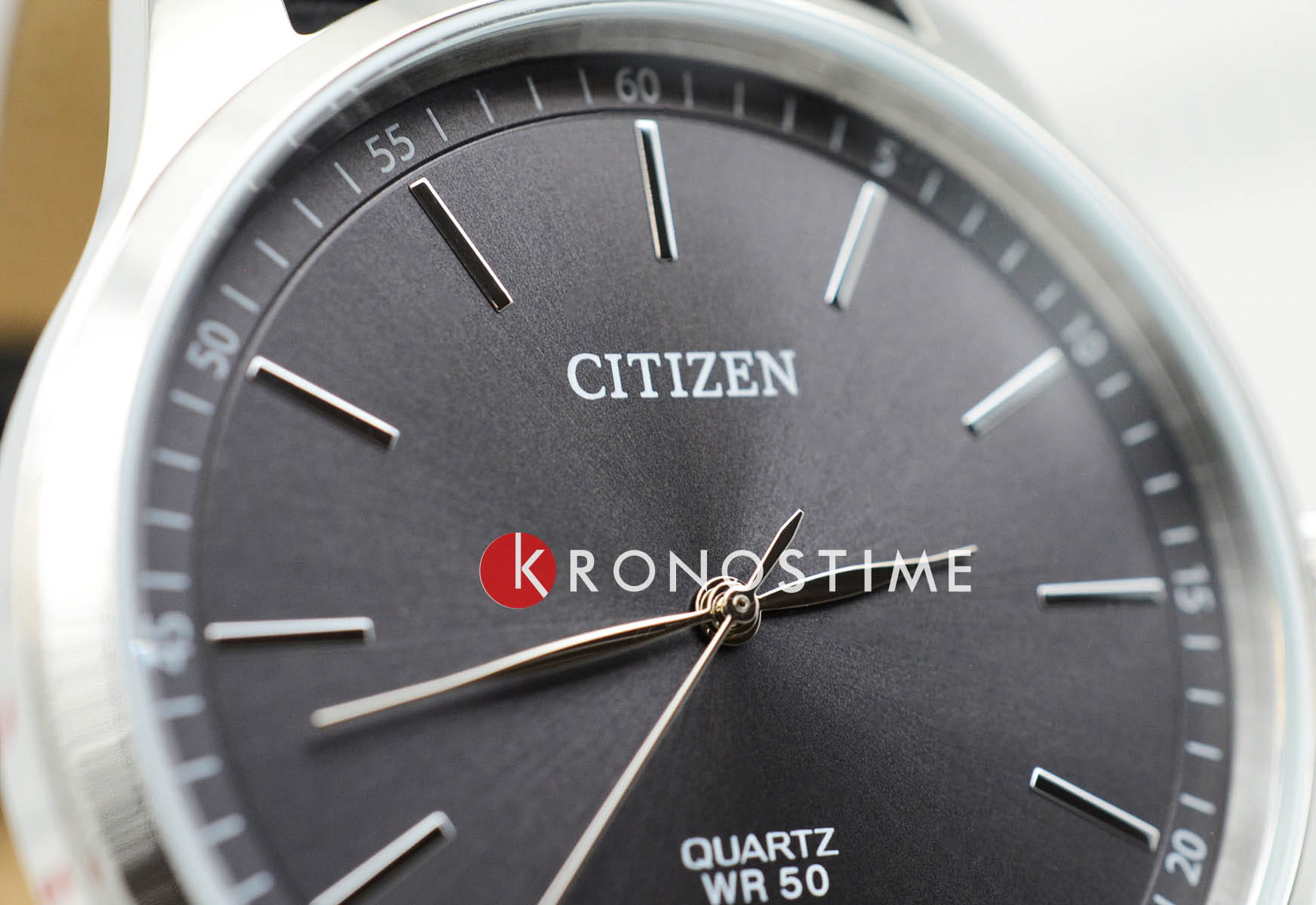 Часы Citizen BH5001-05H сочетают в себе японское качество, современный дизайн и надежность кварцевого механизма Citizen G032. Круглый корпус диаметром 42 мм выполнен из прочной нержавеющей стали, что обеспечивает долговечность и стильный внешний вид. Черный циферблат украшен метками в виде штрихов и выполнен по технологии Sunray, создающей эффект солнечных лучей при попадании света. Минеральное стеклоМинеральное стеклоМинеральное стекло представляет собой искусственно выращенный минерал кварца. Такое стекло отличается особой устойчивостью к повреждениям и царапинам. Уступает по некоторым качествам сапфировому стеклу. защищает циферблат от царапин и повреждений. Рифленая заводная головка подчеркивает элегантность и практичность модели. Кожаный ремешок шириной 22 мм с классической застежкой обеспечивает комфортное ношение и подходит для любого случая. Водозащита до 50 метров позволяет не бояться случайных брызг и дождя.