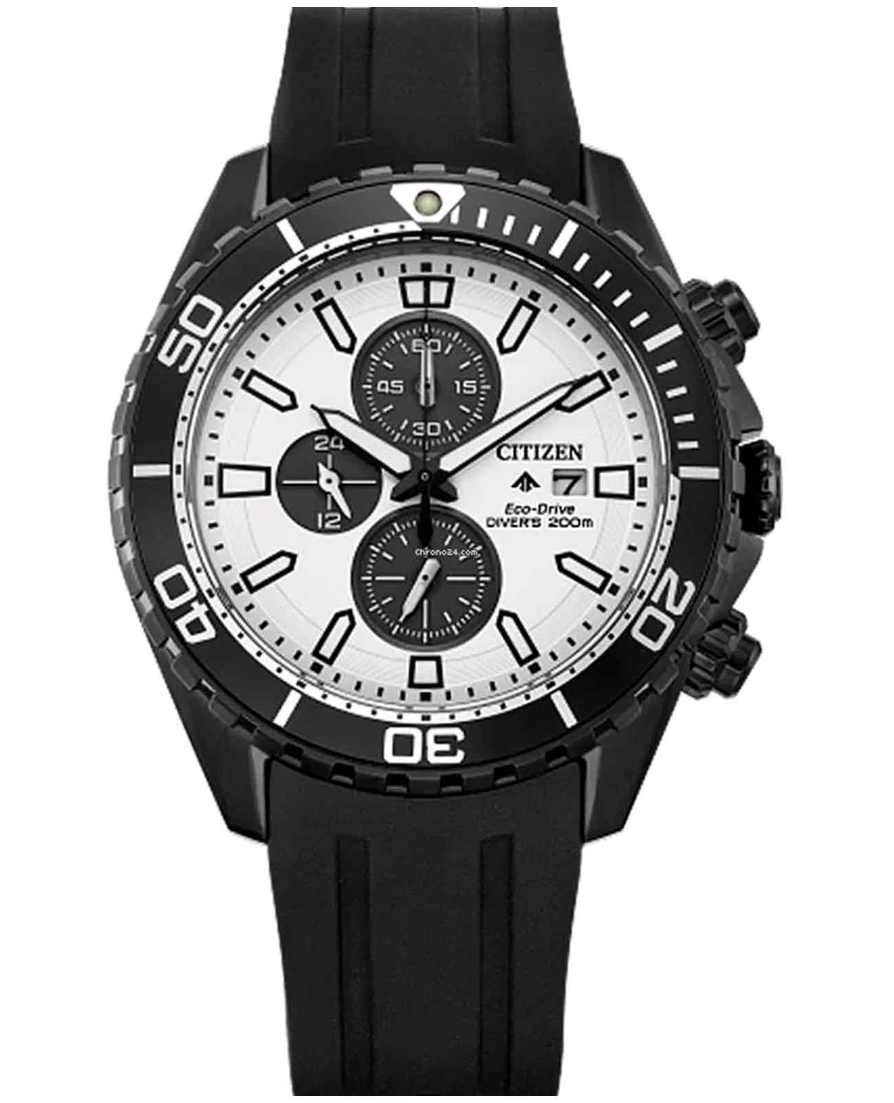 Мужские часы Citizen Promaster CA0825-05A - хронографХронографФункция позволяет измерять отрезки времени с особой точностью: часы, минуты, секунды. Верным признаком хронографа является наличие на циферблате 3 дополнительных окошек-счётчиков. с секундомеромСекундомерСекундоме́р — прибор, способный измерять интервалы времени с точностью до долей секунды. спортивного дизайна с высоким уровнем водозащиты. Корпус из нержавеющей стали с PVD-покрытиемPVDУльтратонкое покрытие наносится в технике вакуумного напыления, сочетает в себе нитрид титана особой прочности со слоем золота или оксида хрома. Несёт в себе декоративную или защитную функцию. диаметром 44,5 мм идеально сбалансирован. Минеральное стеклоМинеральное стеклоМинеральное стекло представляет собой искусственно выращенный минерал кварца. Такое стекло отличается особой устойчивостью к повреждениям и царапинам. Уступает по некоторым качествам сапфировому стеклу. обеспечивает отличную защиту циферблата от царапин. Часы работают на основе кварцевого механизма, функция Eco-Drive (питание от солнечной энергии, запас энергии на 6 месяцев). Полиуретановый ремешок на стандартной застёжке идеально дополняют дизайн часов, обеспечивая комфортное ношение. Стрелки и метки на циферблате имеют люминесцентное покрытиеЛюминесцентное покрытиеПозволяет считывать показания времени в темноте. Производители наносят на стрелки, часовые индексы, безель или поверхность циферблата светонакопительный состав, дающий холодное свечение. позволяющее легко определять время даже в темноте. Однонаправленный вращающийся безельБезельВнешний ободок, закрепляющий стекло. В спортивных часах так называется поворотное кольцо с делениями на циферблате, выполняет роль таймера – замеряет отрезки времени на шкале. Неподвижный безель – элемент декора. Однонаправленно вращающийся безель на дайверских часах позволяет фиксировать моменты погружения и выныривания на поверхность. с PVD-покрытиемPVDУльтратонкое покрытие наносится в технике вакуумного напыления, сочетает в себе нитрид титана особой прочности со слоем золота или оксида хрома. Несёт в себе декоративную или защитную функцию.. Функция индикации заряда (EOL) и предотвращения перезарядки. Окошко даты находится в положении 3 часа. 12/24х часовой формат времени. Часы обладают впечатляющей водонепроницаемостью до 200WR, что делает их идеальными для плавания, ныряния и погружений с аквалангом.