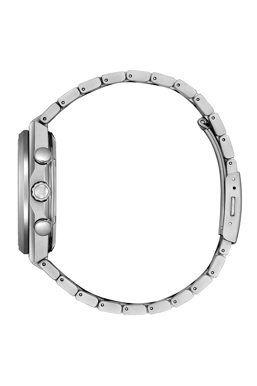 Citizen CA4610-85X — это стильные мужские кварцевые часы с функцией хронографаХронографФункция позволяет измерять отрезки времени с особой точностью: часы, минуты, секунды. Верным признаком хронографа является наличие на циферблате 3 дополнительных окошек-счётчиков., сочетающие передовые технологии и современный дизайн. Корпус и браслет выполнены из сверхлегкого и прочного титана, что обеспечивает комфортное ношение и высокую износостойкость. Зеленый круглый циферблат защищён устойчивым к царапинам сапфировым стекломСапфировое стеклоПрочный и надёжный материал из кристалла сапфира синтетического происхождения, характеризующийся особой твёрдостью и устойчивостью к царапинам и повреждениям.. Часы работают на инновационной системе Eco-Drive, питание которой осуществляется от солнечной энергии, что позволяет отказаться от замены батарейки, а запас хода достигает 9 месяцев. Стрелки с люминесцентным покрытиемЛюминесцентное покрытиеПозволяет считывать показания времени в темноте. Производители наносят на стрелки, часовые индексы, безель или поверхность циферблата светонакопительный состав, дающий холодное свечение. обеспечивают отличную читаемость времени даже в темное время суток. Для удобства предусмотрены функция предотвращения перезарядки и индикация уровня заряда EOLEOLПредставляет собой систему, уведомляющую владельца часов о необходимости замены элемента питания. За 2 недели до полного разряда батарейки секундная стрелка перестаёт ходить чётко и начинает перепрыгивать на 3-4 деления.. Надёжный японский механизм Citizen B620 обеспечивает точный ход, а центральные часовая и минутная стрелки, вынесенная на отдельный малый циферблат секундная стрелка и апертура даты между 4 и 5 часами делают использование максимально удобным. Модель поддерживает 12- и 24-часовой формат времени, а также оснащена секундомером для точного измерения промежутков. Диаметр корпуса составляет 42,5 мм, толщина — 11,6 мм, вес — около 101 грамма. Водозащита уровня WR 100 позволяет не снимать часы во время плавания без глубокого погружения. Раскладная застёжкаРаскладная застёжкаТакой тип застёжки используется только на браслетах из металла. Она никогда не раскрывается полностью, происходит разделение на 2 и более частей. Раскладывающая застёжка снизит вероятность потери часов к минимуму. на браслете обеспечивает надежную фиксацию на запястье. Модель оснащена хронографомХронографФункция позволяет измерять отрезки времени с особой точностью: часы, минуты, секунды. Верным признаком хронографа является наличие на циферблате 3 дополнительных окошек-счётчиков. с секундомеромСекундомерСекундоме́р — прибор, способный измерять интервалы времени с точностью до долей секунды. и тахиметромТахиметрРазмеченная шкала, располагается на ободке или безеле часов. Тахиметр позволяет рассчитать скорость на определённом участке пути, расстояние измеряется в километрах или милях..