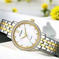 Часы Citizen EL3104-54D представляют собой элегантную модель, выполненную в Японии, сочетающую в себе современные технологии и утончённый дизайн. Корпус  изготовлен из прочной нержавеющей стали, что обеспечивает долговечность и привлекательный внешний вид. Диаметр корпуса составляет 31 мм, а толщина — всего 7 мм, что делает часы изящными и аккуратными на запястье. Особое внимание привлекает безельБезельВнешний ободок, закрепляющий стекло. В спортивных часах так называется поворотное кольцо с делениями на циферблате, выполняет роль таймера – замеряет отрезки времени на шкале. Неподвижный безель – элемент декора. Однонаправленно вращающийся безель на дайверских часах позволяет фиксировать моменты погружения и выныривания на поверхность. с золотистым IP-покрытиемIP-покрытиеМетод ионного напыления. Демонстрирует повышенную устойчивость к истиранию, окислению и химическим веществам. Под воздействием высокого давления и температуры около 1500°C молекулы металла надёжно соединяются с частицами корпуса часов., украшенный мерцающими кристаллами, которые придают часам особый шарм и изысканность. Надёжный кварцевый механизм гарантирует точность хода, а водозащита уровня WR 50 позволяет не снимать часы при мытье рук или во время дождя. Перламутровый циферблат украшен часовыми индексами в виде точек и цифр, а также оснащён центральными стрелками часов, минут и секунд для удобного считывания времени и кристаллами. Минеральное стеклоМинеральное стеклоМинеральное стекло представляет собой искусственно выращенный минерал кварца. Такое стекло отличается особой устойчивостью к повреждениям и царапинам. Уступает по некоторым качествам сапфировому стеклу. устойчиво к появлению мелких царапин, сохраняя прозрачность и презентабельный вид.  Стальной браслет с частичным золотистым IP-покрытиемIP-покрытиеМетод ионного напыления. Демонстрирует повышенную устойчивость к истиранию, окислению и химическим веществам. Под воздействием высокого давления и температуры около 1500°C молекулы металла надёжно соединяются с частицами корпуса часов. и раскладной застёжкойРаскладная застёжкаТакой тип застёжки используется только на браслетах из металла. Она никогда не раскрывается полностью, происходит разделение на 2 и более частей. Раскладывающая застёжка снизит вероятность потери часов к минимуму. надежно фиксирует часы на запястье, обеспечивая комфорт при ежедневном ношении.