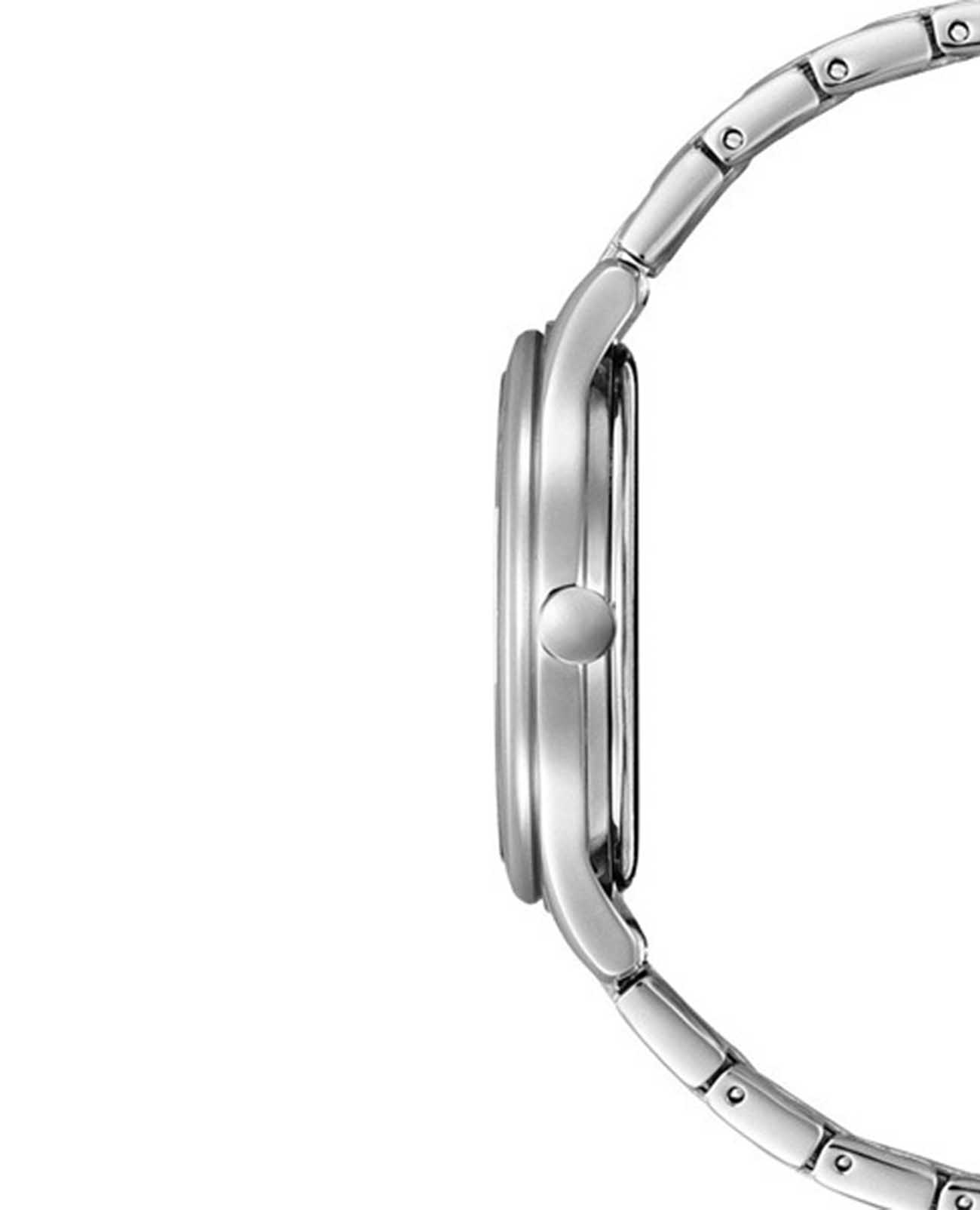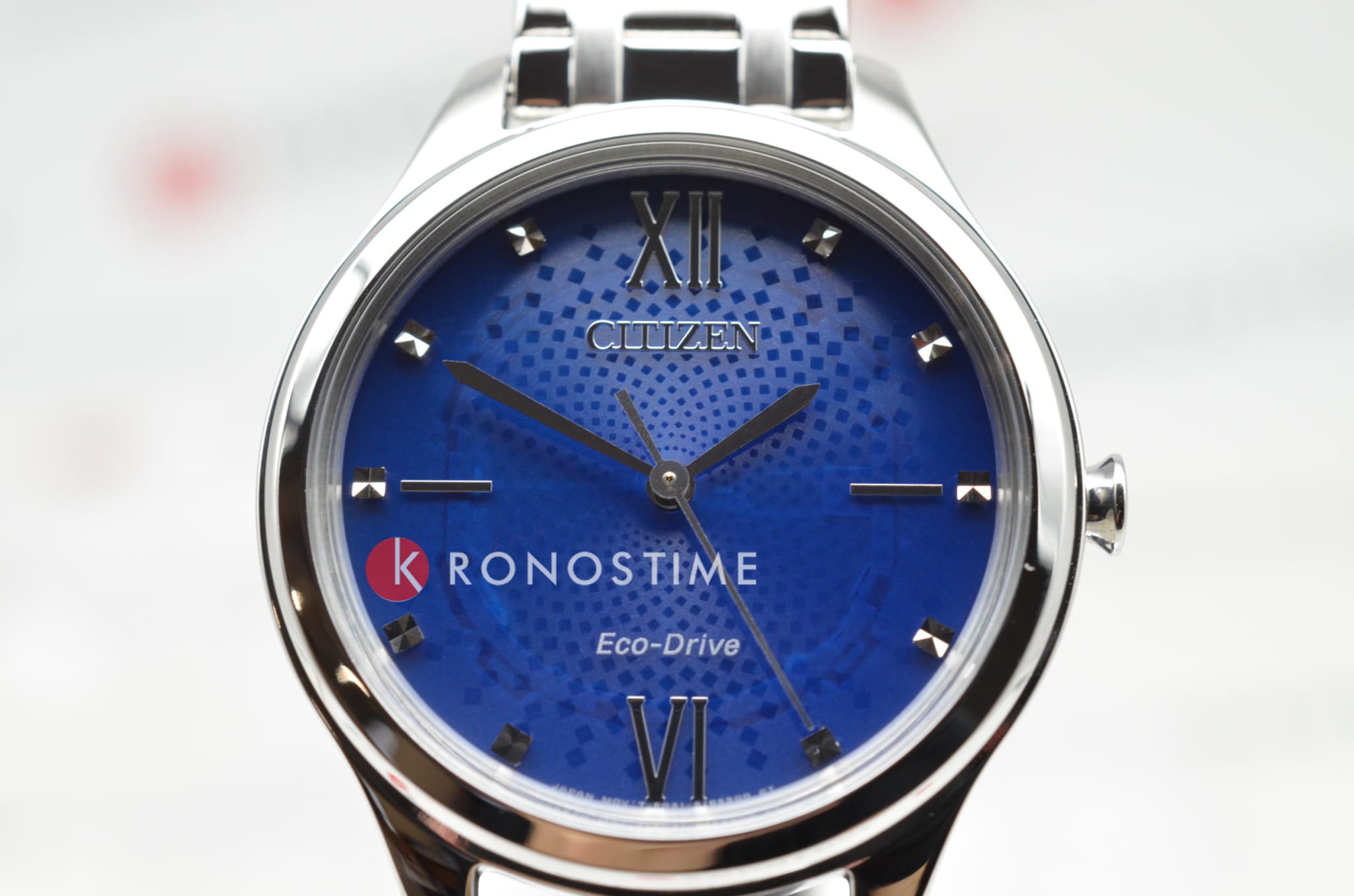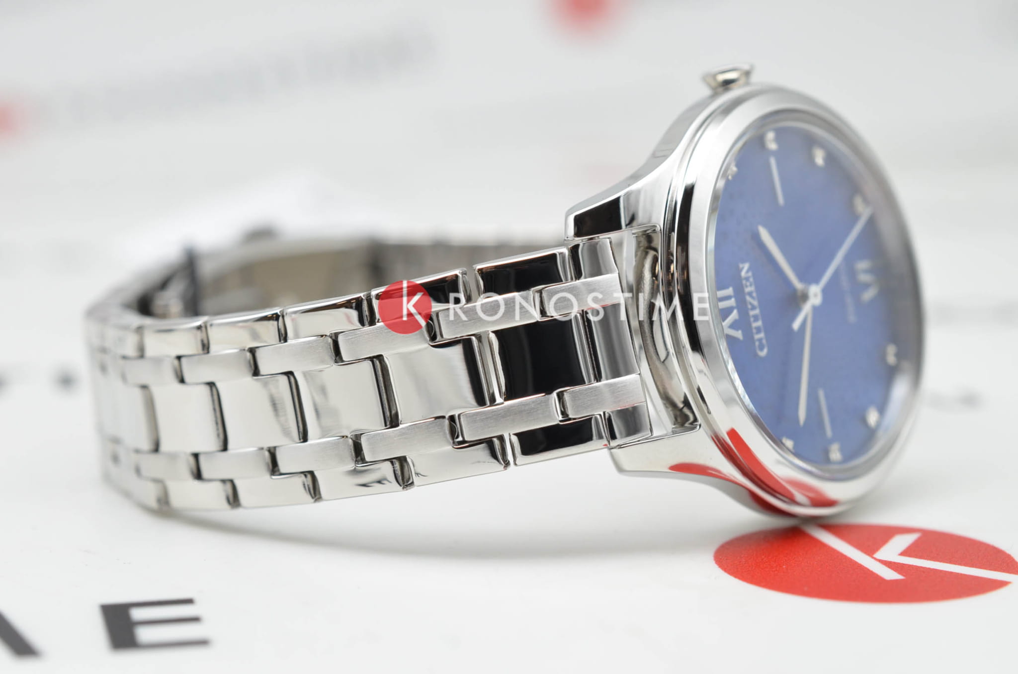 Часы Citizen EM0500-73L — это стильная модель, сочетающая в себе утонченную классику и современные технологии. Корпус и браслет изготовлены из прочной нержавеющей стали, что обеспечивает не только износостойкость, но и элегантный внешний вид. Синий циферблат отличается кристаллами и лаконичным оформлением и защищён надёжным минеральным стекломМинеральное стеклоМинеральное стекло представляет собой искусственно выращенный минерал кварца. Такое стекло отличается особой устойчивостью к повреждениям и царапинам. Уступает по некоторым качествам сапфировому стеклу., устойчивым к царапинам. Часы оснащены инновационной системой Eco-Drive, которая позволяет заряжаться от любого источника света и не требует замены батарейки, а запас энергии составляет до 180 дней. Механизм Citizen E031 гарантирует точность хода, а функция индикации заряда EOLEOLПредставляет собой систему, уведомляющую владельца часов о необходимости замены элемента питания. За 2 недели до полного разряда батарейки секундная стрелка перестаёт ходить чётко и начинает перепрыгивать на 3-4 деления. своевременно подскажет о необходимости подзарядки. Водозащита до 50 метров обеспечивает дополнительную практичность и защищает механизм от влаги при повседневном использовании. Браслет шириной 14 мм и длиной 143 мм удобно фиксируется на запястье с помощью раскладной застёжкиРаскладная застёжкаТакой тип застёжки используется только на браслетах из металла. Она никогда не раскрывается полностью, происходит разделение на 2 и более частей. Раскладывающая застёжка снизит вероятность потери часов к минимуму. с системой блокировки, что обеспечивает надёжность и комфорт в течение всего дня. Диаметр корпуса составляет 32 мм, а толщина — 7,6 мм, благодаря чему часы выглядят изящно и подходят для любого случая.