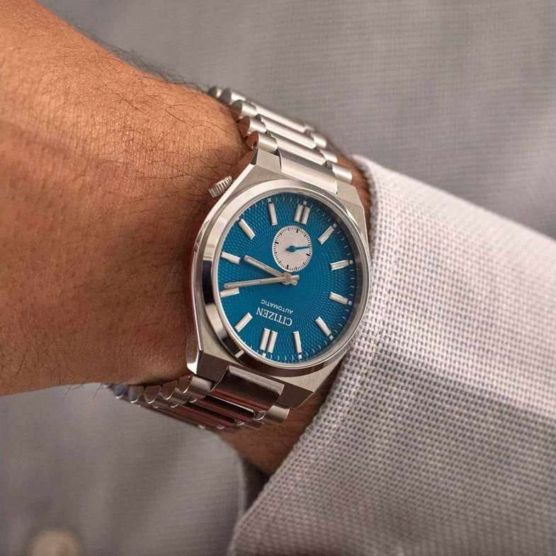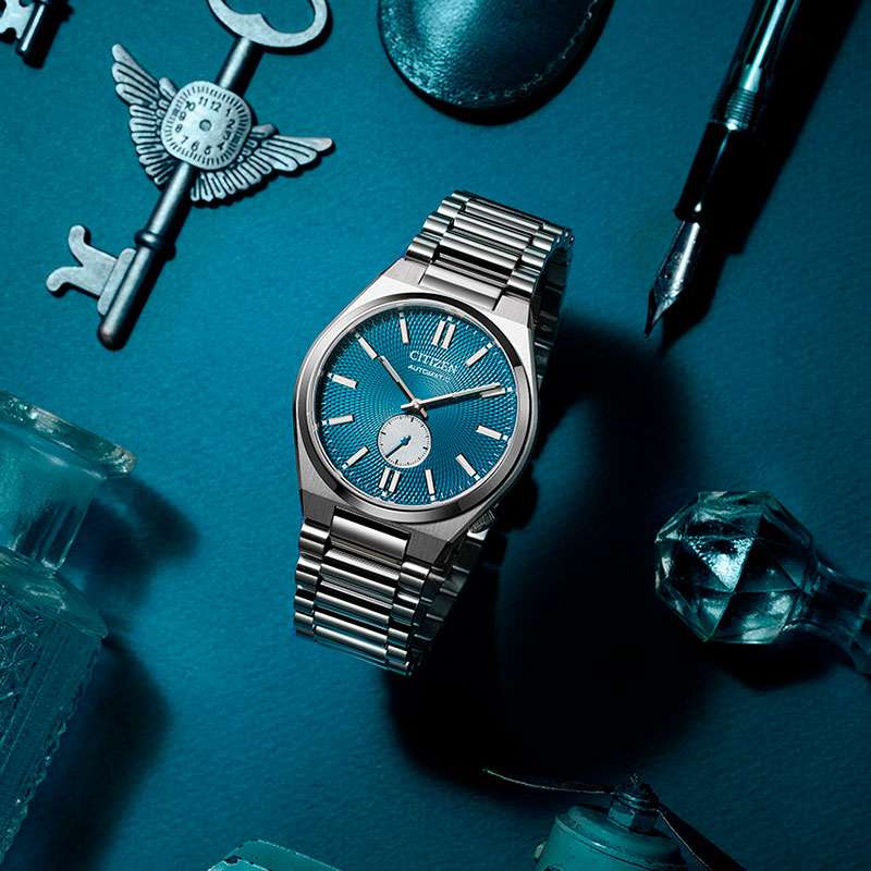 Мужские наручные часы Citizen Automatic NK5010-51L - идеальное сочетание классического и современного дизайна. Корпус из нержавеющей стали диаметром 41 мм идеально сбалансирован. Сапфировое стеклоСапфировое стеклоПрочный и надёжный материал из кристалла сапфира синтетического происхождения, характеризующийся особой твёрдостью и устойчивостью к царапинам и повреждениям. обеспечивает отличную защиту циферблата от царапин. Механические часы с автоподзаводом. Стальной браслет с застёжкой «бабочка» с кнопкамиЗастёжка "бабочка"Такой вид застёжки дополняется предохранителями, помогающими избежать случайного раскрытия браслета. Обладают изящным исполнением. идеально дополняют дизайн часов, обеспечивая комфортное ношение. В механизме 21 камень, частота 21600 полуколебаний в час. Стрелки и метки с люминесцентным покрытиемЛюминесцентное покрытиеПозволяет считывать показания времени в темноте. Производители наносят на стрелки, часовые индексы, безель или поверхность циферблата светонакопительный состав, дающий холодное свечение.. Секундная стрелка вынесена на отдельный циферблат. Текстурный циферблат выполнен по технологии Sunray (солнечные лучи). Метки в виде штрихов. Рифленая заводная головка. Циферблат выполнен по технологии Sunray (солнечные лучи). Часы обладают водонепроницаемостью до 50WR, что делает их идеальными для повседневной носки.