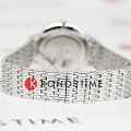 Женские наручные часы Cover CO124.20 сочетают в себе элегантный дизайн и надежность современных технологий. Модель обладает круглым корпусом диаметром 35 мм, изготовленным из нержавеющей стали, что обеспечивает высокую устойчивость к внешним воздействиям. Браслет выполнен из нержавеющей стали с застежкой-бабочкойЗастёжка "бабочка"Такой вид застёжки дополняется предохранителями, помогающими избежать случайного раскрытия браслета. Обладают изящным исполнением. , которая отличается удобством использования и подходит для запястий любого размера благодаря своей посадке. Циферблат декорирован синтетическими бриллиантами, которые придают часам особый шик и неповторимый вид. Для защиты используется сапфировое стеклоСапфировое стеклоПрочный и надёжный материал из кристалла сапфира синтетического происхождения, характеризующийся особой твёрдостью и устойчивостью к царапинам и повреждениям., обеспечивающее прочную защиту от царапин. Часы работают на кварцевом механизме, основанном на ETA 902.002, что гарантирует точное время без необходимости подзаводки. Водонепроницаемость часов составляет 3 атмосферы, что позволяет использовать их в повседневной жизни, однако не рекомендуется для плавания или водных видов спорта.