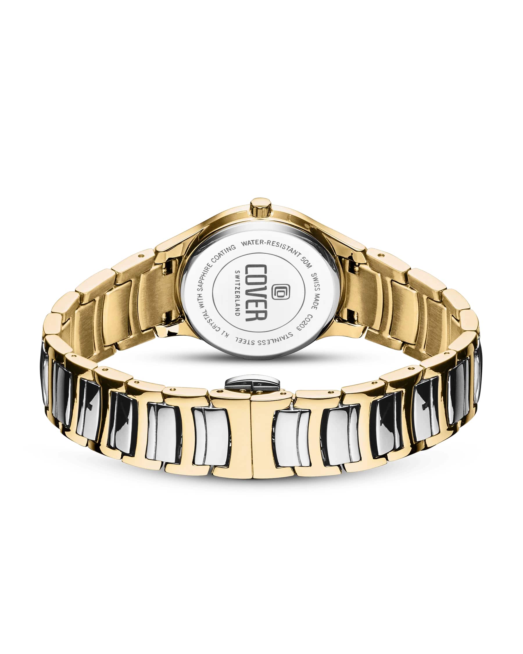 Женские наручные часы Sandara CO203.03 сочетают в себе элегантный дизайн и надежность современных технологий. Модель обладает круглым корпусом диаметром 28 мм, изготовленным из нержавеющей стали, что обеспечивает высокую устойчивость к внешним воздействиям. БезельБезельВнешний ободок, закрепляющий стекло. В спортивных часах так называется поворотное кольцо с делениями на циферблате, выполняет роль таймера – замеряет отрезки времени на шкале. Неподвижный безель – элемент декора. Однонаправленно вращающийся безель на дайверских часах позволяет фиксировать моменты погружения и выныривания на поверхность. с PVD-покрытиемPVDУльтратонкое покрытие наносится в технике вакуумного напыления, сочетает в себе нитрид титана особой прочности со слоем золота или оксида хрома. Несёт в себе декоративную или защитную функцию.. Браслет выполнен из нержавеющей стали с PVD-покрытиемPVDУльтратонкое покрытие наносится в технике вакуумного напыления, сочетает в себе нитрид титана особой прочности со слоем золота или оксида хрома. Несёт в себе декоративную или защитную функцию. и застежкой-бабочкойЗастёжка "бабочка"Такой вид застёжки дополняется предохранителями, помогающими избежать случайного раскрытия браслета. Обладают изящным исполнением. , которая отличается удобством использования и подходит для запястий любого размера благодаря своей посадке. Циферблат декорирован кристаллами, которые придают часам особый шик и неповторимый вид. Для защиты используется сапфировое стеклоСапфировое стеклоПрочный и надёжный материал из кристалла сапфира синтетического происхождения, характеризующийся особой твёрдостью и устойчивостью к царапинам и повреждениям., обеспечивающее прочную защиту от царапин. Часы работают на кварцевом механизме, что гарантирует точное время без необходимости подзаводки. Водонепроницаемость часов составляет 5 атмосфер, что позволяет использовать их в повседневной жизни, однако не рекомендуется для плавания или водных видов спорта.
