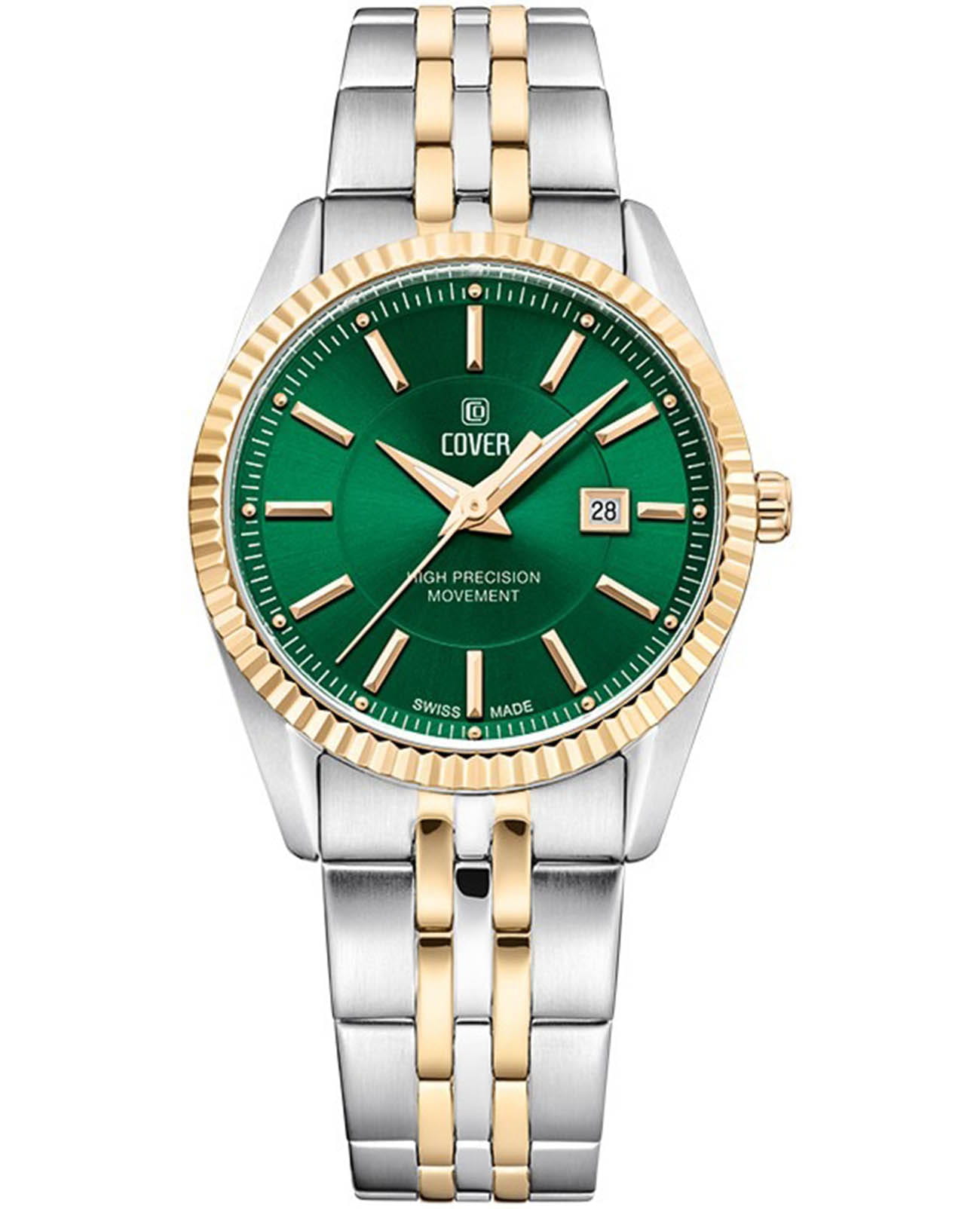 Часы COVER CO209.10 из коллекции Alston – элегантная модель швейцарского производства. Эти часы станут идеальным аксессуаром для элегантных дам, которые ценят стиль и качество. Браслет с раскладной застёжкойРаскладная застёжкаТакой тип застёжки используется только на браслетах из металла. Она никогда не раскрывается полностью, происходит разделение на 2 и более частей. Раскладывающая застёжка снизит вероятность потери часов к минимуму. и безельБезельВнешний ободок, закрепляющий стекло. В спортивных часах так называется поворотное кольцо с делениями на циферблате, выполняет роль таймера – замеряет отрезки времени на шкале. Неподвижный безель – элемент декора. Однонаправленно вращающийся безель на дайверских часах позволяет фиксировать моменты погружения и выныривания на поверхность. изготовлены из нержавеющей стали с PVDPVDУльтратонкое покрытие наносится в технике вакуумного напыления, сочетает в себе нитрид титана особой прочности со слоем золота или оксида хрома. Несёт в себе декоративную или защитную функцию. покрытием золотого цвета, корпус имеет диаметр 30 мм. На зеленом циферблате расположены накладные римские цифры. Надежное минеральное стеклоМинеральное стеклоМинеральное стекло представляет собой искусственно выращенный минерал кварца. Такое стекло отличается особой устойчивостью к повреждениям и царапинам. Уступает по некоторым качествам сапфировому стеклу. защищает часы от царапин и долго сохраняет первоначальный внешний вид. Они показывают день месяца, индикатор которых с накладной рамкой расположен в положении «3 часа». Водозащита 50 метров делает часы практичными для повседневного использования. На часовую, минутную стрелки нанесено люминесцентное покрытиеЛюминесцентное покрытиеПозволяет считывать показания времени в темноте. Производители наносят на стрелки, часовые индексы, безель или поверхность циферблата светонакопительный состав, дающий холодное свечение., которое светится в темноте, создавая необычное изображение. Эти часы идеально подойдут для светских раутов, бизнес-встреч и других важных событий, подчеркнут вашу элегантность и статус.