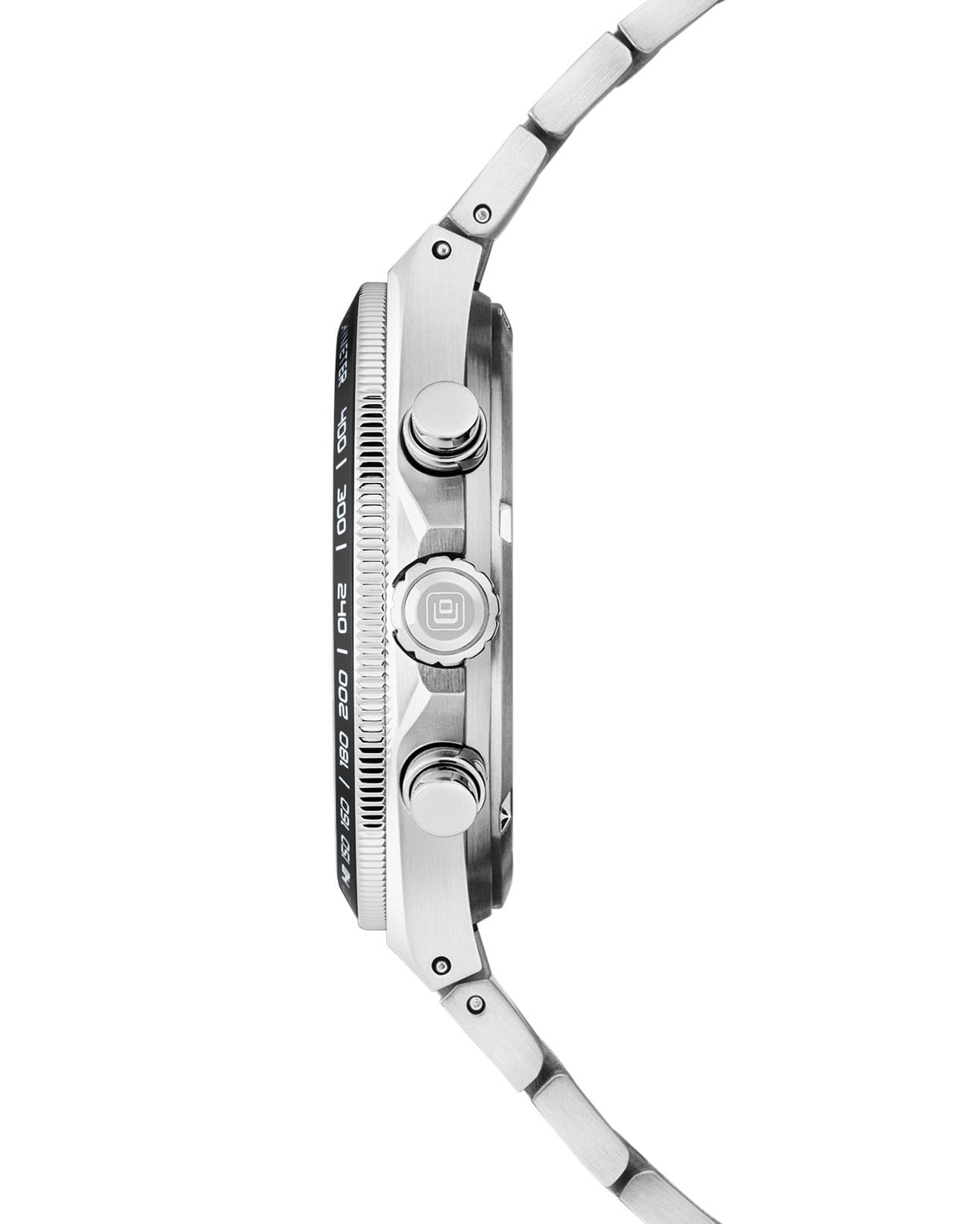Мужские наручные часы-хронографХронографФункция позволяет измерять отрезки времени с особой точностью: часы, минуты, секунды. Верным признаком хронографа является наличие на циферблате 3 дополнительных окошек-счётчиков. Cover CO212.06 из коллекции Iconosteel сочетают в себе классический дизайн и надежность современных технологий. Часы оснащены кварцевым механизмом с модулем хронографа Ronda 5040.D, они обеспечивают точность и надежность в каждом моменте. Модель обладает круглым корпусом диаметром 41 мм, изготовленным из нержавеющей стали, что обеспечивает высокую устойчивость к внешним воздействиям. Браслет выполнен из нержавеющей стали с раскладной застёжкойРаскладная застёжкаТакой тип застёжки используется только на браслетах из металла. Она никогда не раскрывается полностью, происходит разделение на 2 и более частей. Раскладывающая застёжка снизит вероятность потери часов к минимуму., гарантирующей комфортное ношение и безопасность. Серебристый циферблат оснащен окном даты на «4 часах» и стрелками с люминесцентным покрытиемЛюминесцентное покрытиеПозволяет считывать показания времени в темноте. Производители наносят на стрелки, часовые индексы, безель или поверхность циферблата светонакопительный состав, дающий холодное свечение.. Для защиты используется сапфировое стеклоСапфировое стеклоПрочный и надёжный материал из кристалла сапфира синтетического происхождения, характеризующийся особой твёрдостью и устойчивостью к царапинам и повреждениям., обеспечивающее прочную защиту от царапин и антибликовый эффект. На черный безельБезельВнешний ободок, закрепляющий стекло. В спортивных часах так называется поворотное кольцо с делениями на циферблате, выполняет роль таймера – замеряет отрезки времени на шкале. Неподвижный безель – элемент декора. Однонаправленно вращающийся безель на дайверских часах позволяет фиксировать моменты погружения и выныривания на поверхность. с PVD-покрытиемPVDУльтратонкое покрытие наносится в технике вакуумного напыления, сочетает в себе нитрид титана особой прочности со слоем золота или оксида хрома. Несёт в себе декоративную или защитную функцию. нанесена шкала тахиметраТахиметрРазмеченная шкала, располагается на ободке или безеле часов. Тахиметр позволяет рассчитать скорость на определённом участке пути, расстояние измеряется в километрах или милях.. Модель также является хронографом, оснащенным функцией секундомераСекундомерСекундоме́р — прибор, способный измерять интервалы времени с точностью до долей секунды., делая ее идеальной для активного образа жизни. Водонепроницаемость часов достигает 10 атмосфер (100 метров), что позволяет использовать их во время плавания и других водных видов спорта, однако не рекомендуется для глубоководного дайвинга.